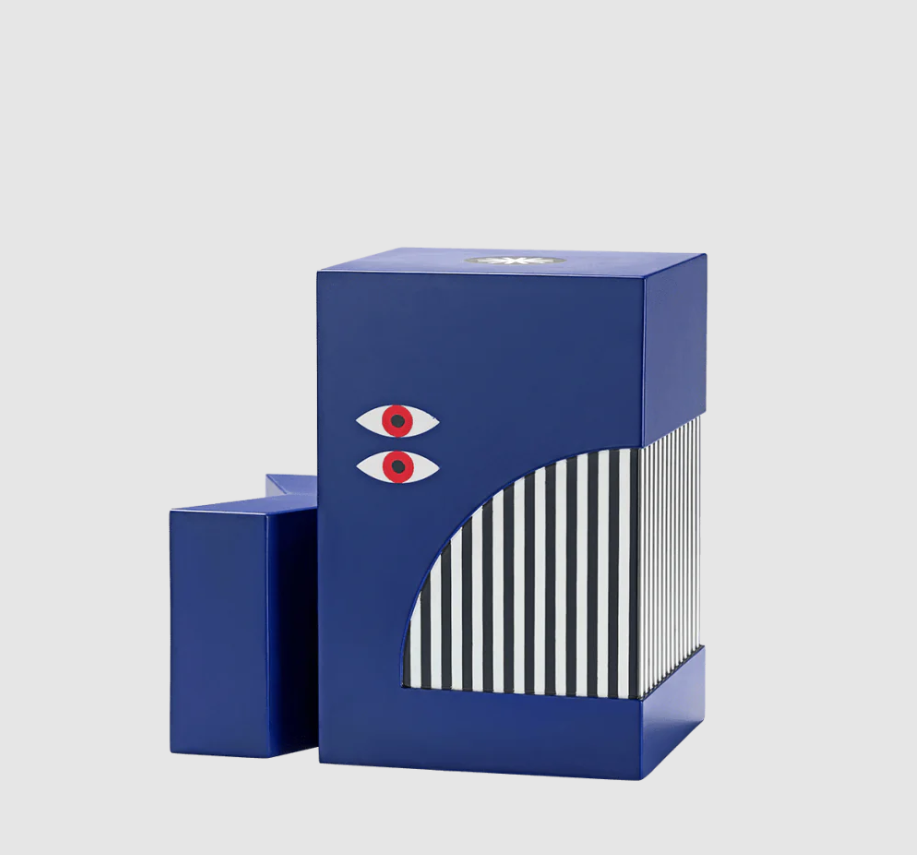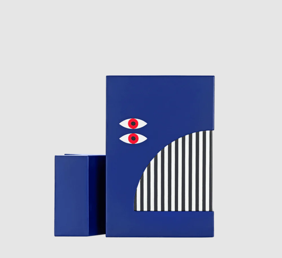 Sa ligne essentielle et sa finition laquée bleue évoquent la mer, transformant un objet fonctionnel en une présence poétique.