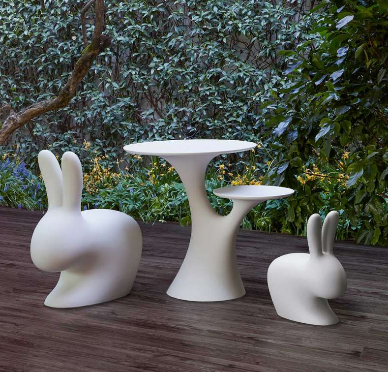 Table à deux niveaux inspirée d'un arbre, conçue pour accompagner la chaise Rabbit.