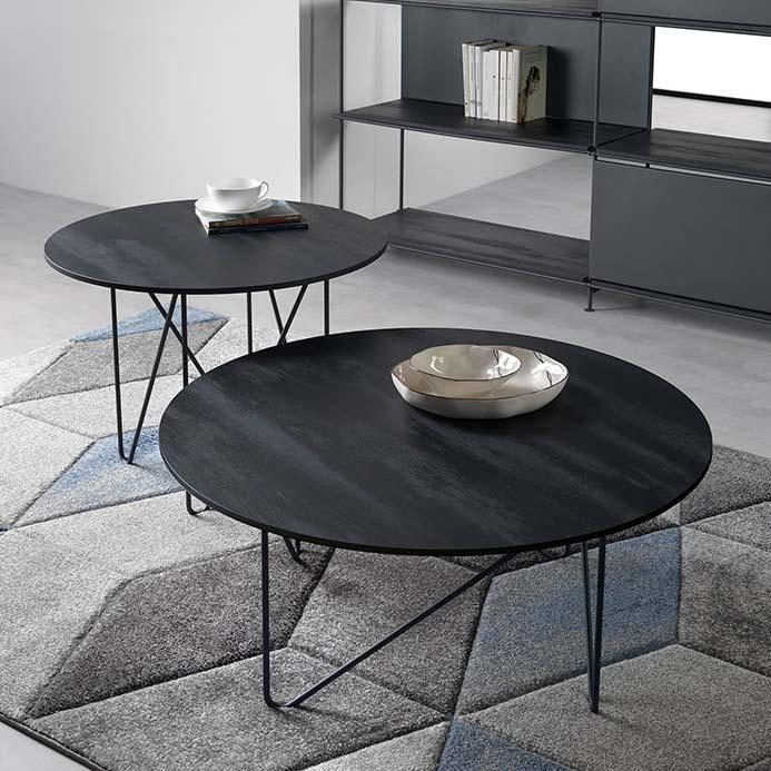 Table basse ronde Shape avec structure en acier peint sablé et étagère en stratifié écologique de 12 mm.