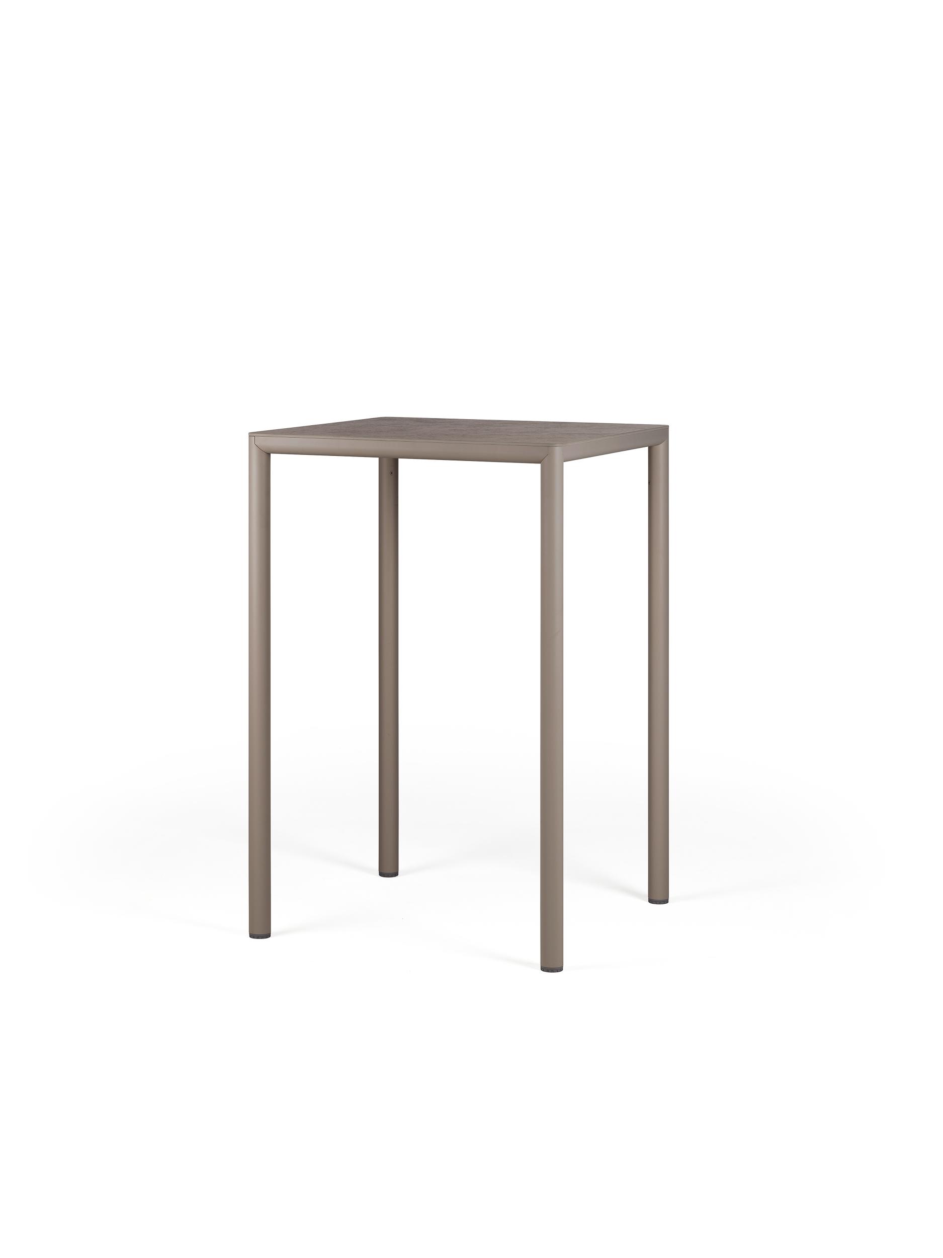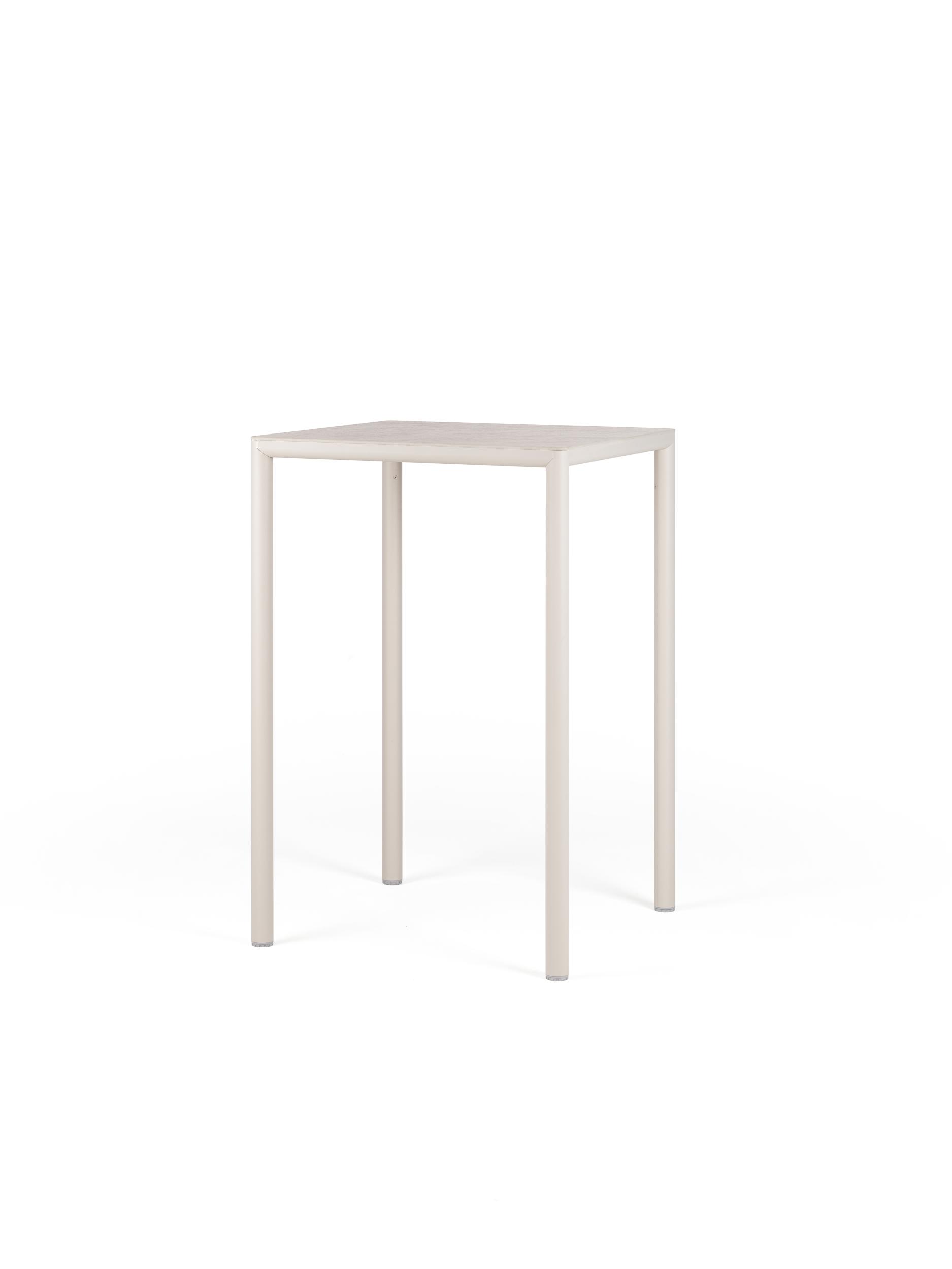 Le plateau carré est réalisé en stratifié ultra-mince, avec des coins arrondis, ce qui confère à la table un aspect contemporain.