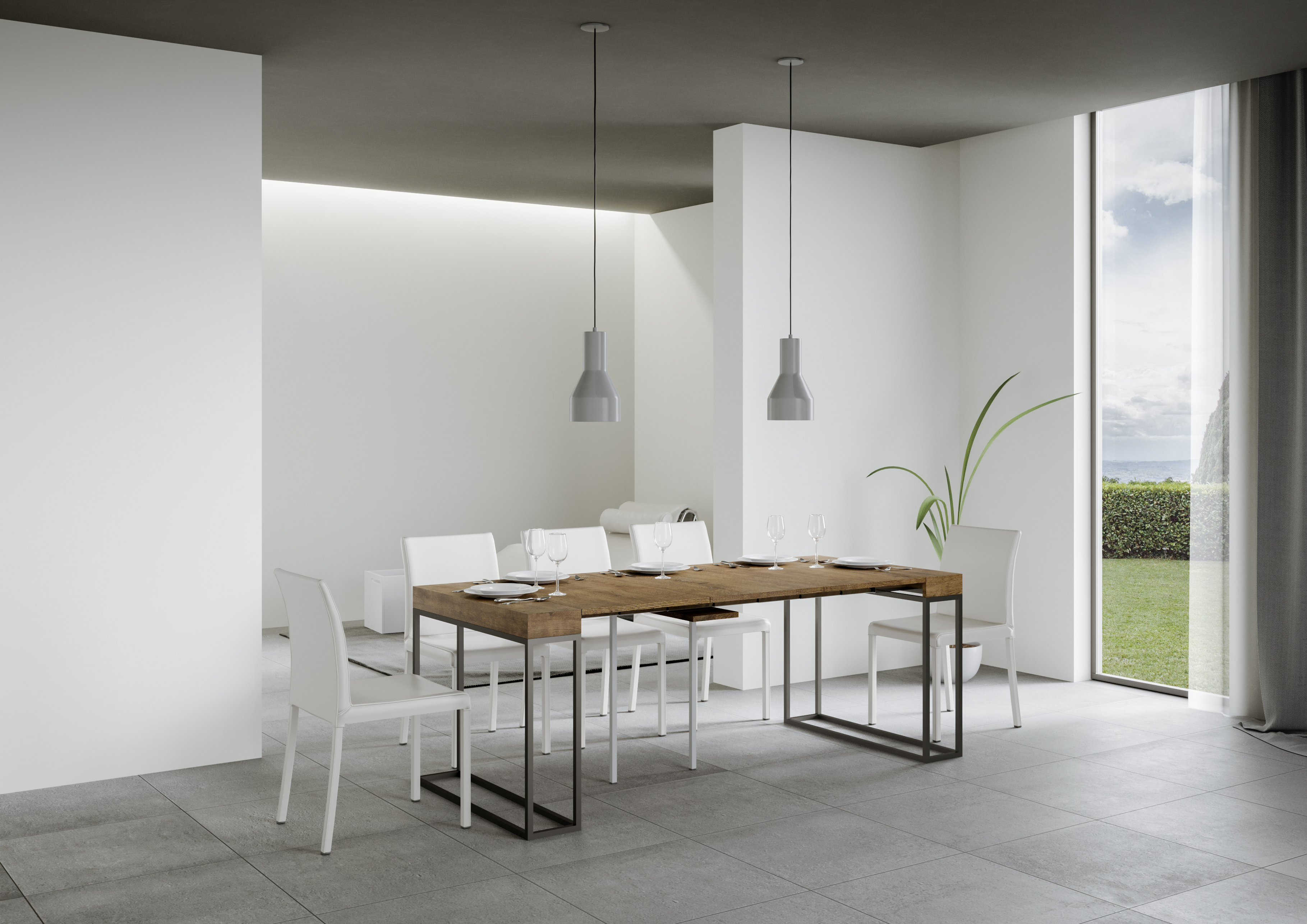 Polyvalente et robuste, la console extensible Epoca Small s'intègre parfaitement dans toutes les pièces de la maison : entrée, cuisine, salle à manger, salon ou couloir. Elle se transforme facilement en une grande table à manger jusqu'à 196 cm de long, pouvant accueillir 10 personnes. Fabriquée en panneaux mélaminés et dotée de pieds en fer, son système d'extension est équipé de glissières télescopiques en aluminium et d'un support central, garantissant stabilité et robustesse. Une fois la console fermée, les extensions se rangent facilement. Produit Itamoby, fabriqué en Italie. Dimensions : Console fermée : L 90 P 40 H 77 cm. Longueur avec 1 extension : 92 cm. Longueur avec 2 extensions : 144 cm. Longueur avec 3 extensions : 196 cm.
