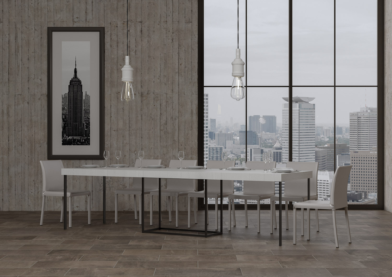 La console extensible Nordica Premium est polyvalente et robuste, ce qui en fait le complément idéal pour toutes les pièces de la maison : entrée, cuisine, salle à manger, salon ou couloir. Elle se transforme facilement en une grande table à manger jusqu'à 300 cm de long, pouvant accueillir 14 personnes. Fabriquée en panneaux mélaminés et dotée de pieds en fer, elle est stable et robuste grâce à son système de rallonges avec glissières télescopiques en aluminium et aux supports latéraux inclus. Une fois la console fermée, les rallonges se rangent facilement. Produit Itamoby, fabriqué en Italie. Dimensions : Console fermée : L 90 P 40 H 77 cm. Longueur avec 1 rallonge : 92 cm. Longueur avec 2 rallonges : 144 cm. Longueur avec 3 rallonges : 196 cm. Longueur avec 4 rallonges : 248 cm. Longueur avec 5 rallonges : 300 cm.