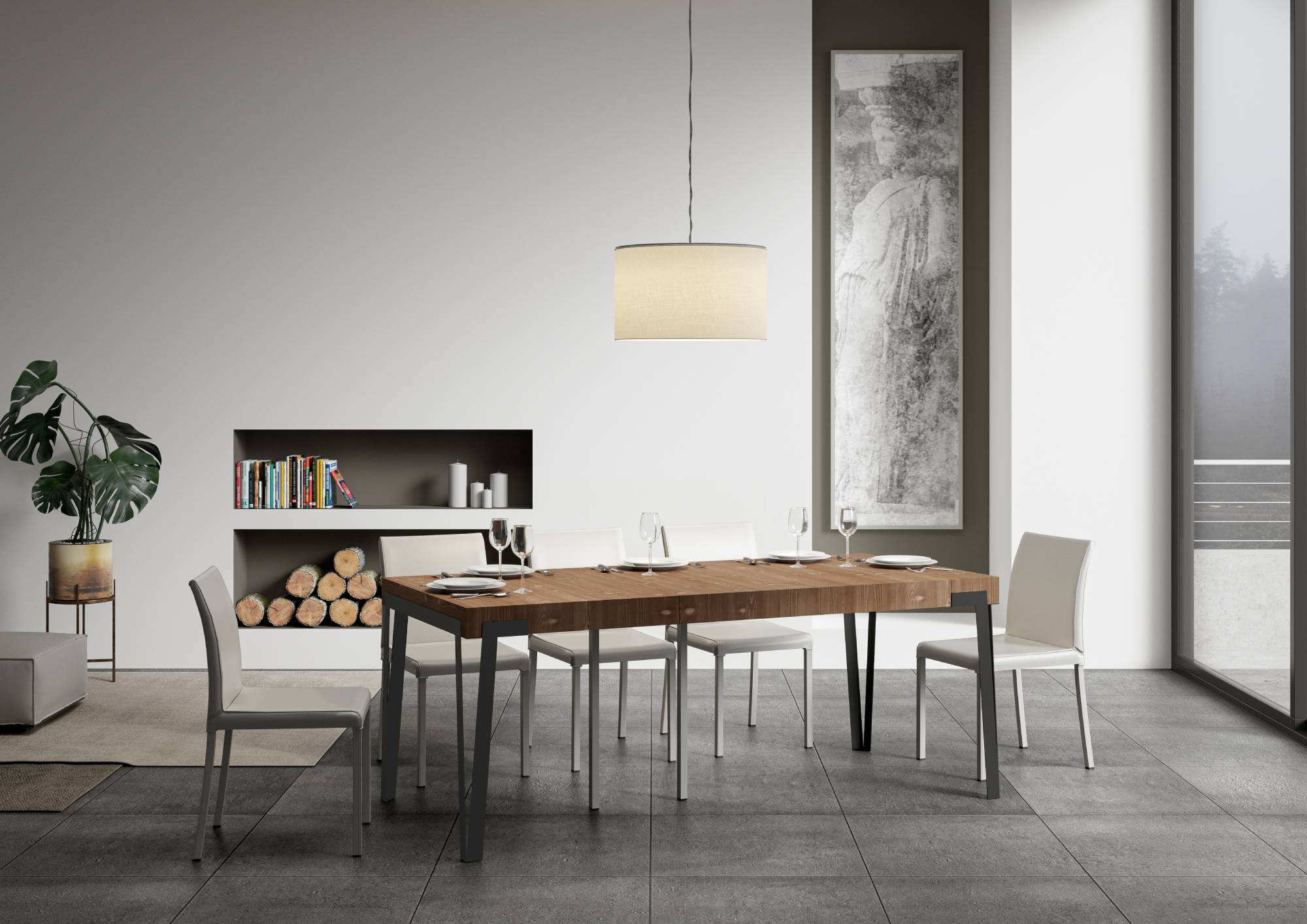 Polyvalente et robuste, la console extensible Rio Premium s'intègre parfaitement dans toutes les pièces de la maison : entrée, cuisine, salle à manger, salon ou couloir. Transformable en une grande table à manger jusqu'à 300 cm de long, elle peut accueillir jusqu'à 14 personnes. Fabriquée en panneaux mélaminés et dotée de pieds en fer, son système d'extension est équipé de glissières télescopiques en aluminium et d'un support central, garantissant stabilité et robustesse. Une fois repliée, les extensions se rangent facilement. Produit Itamoby, fabriqué en Italie. Dimensions : Console fermée : L 90 P 40 H 77 cm. Longueur avec 1 allonge : 92 cm. Longueur avec 2 allonges : 144 cm. Longueur avec 3 allonges : 196 cm. Longueur avec 4 allonges : 248 cm. Longueur avec 5 allonges : 300 cm.