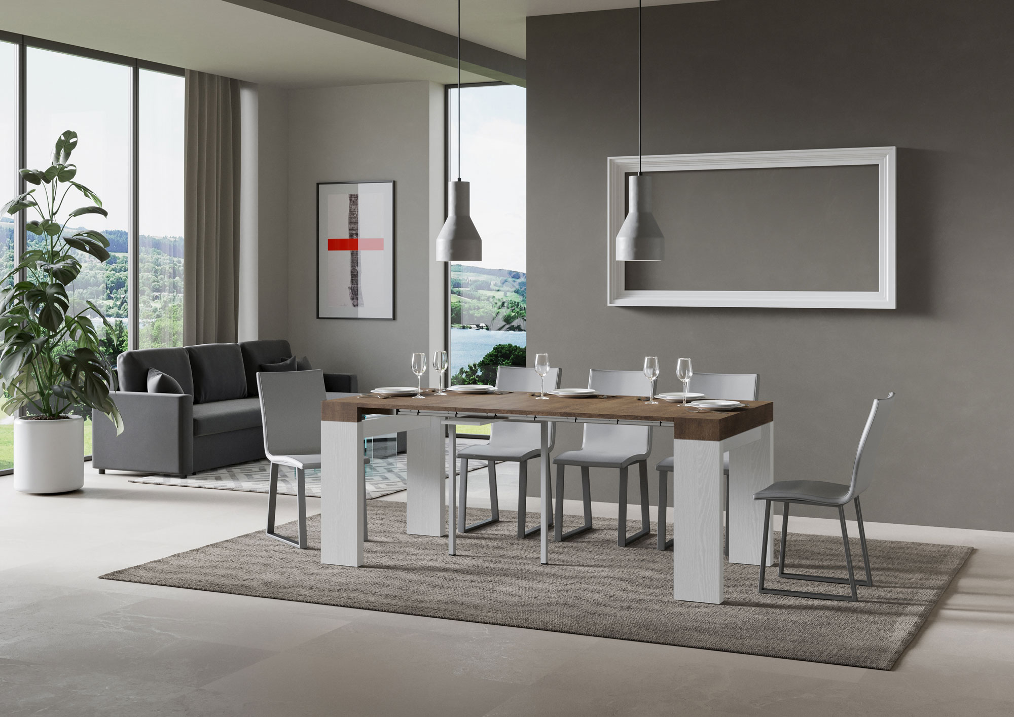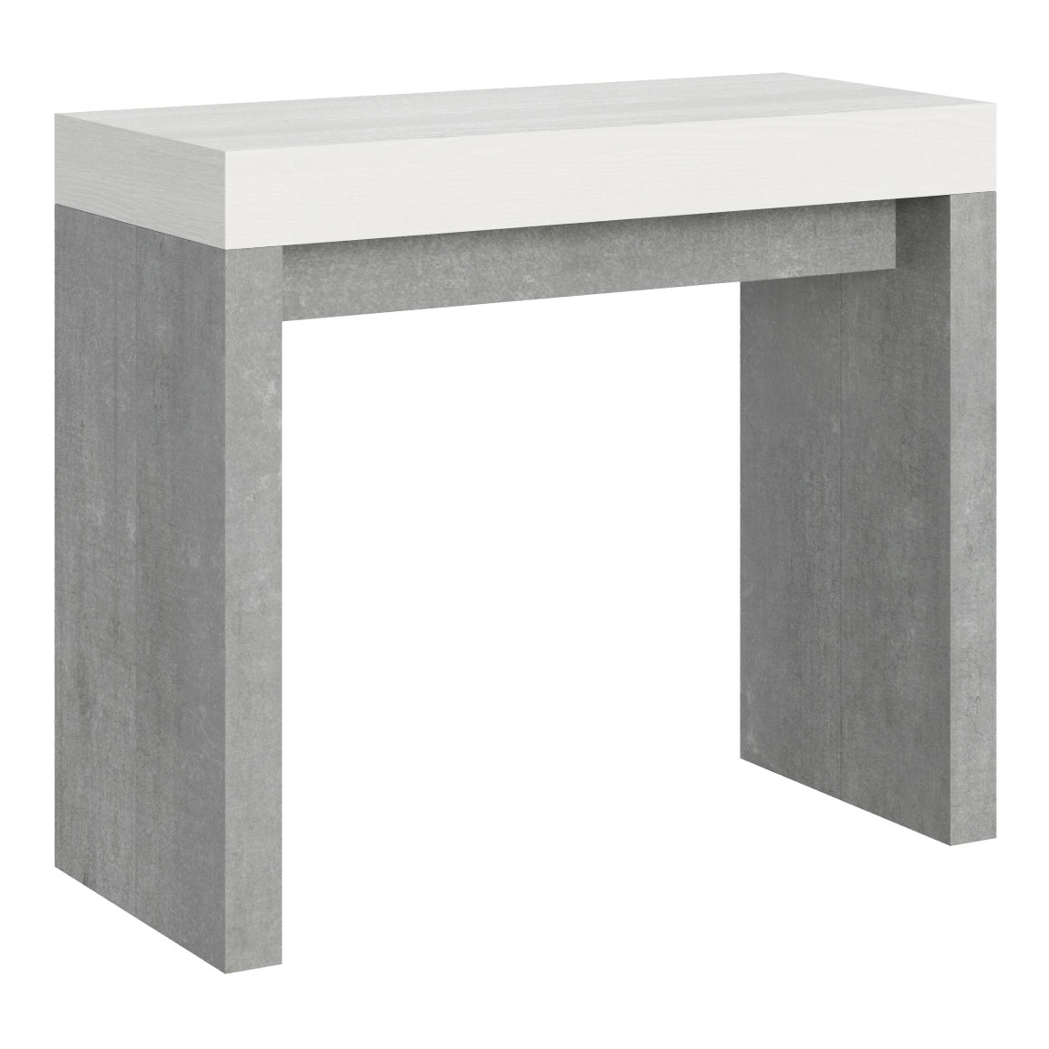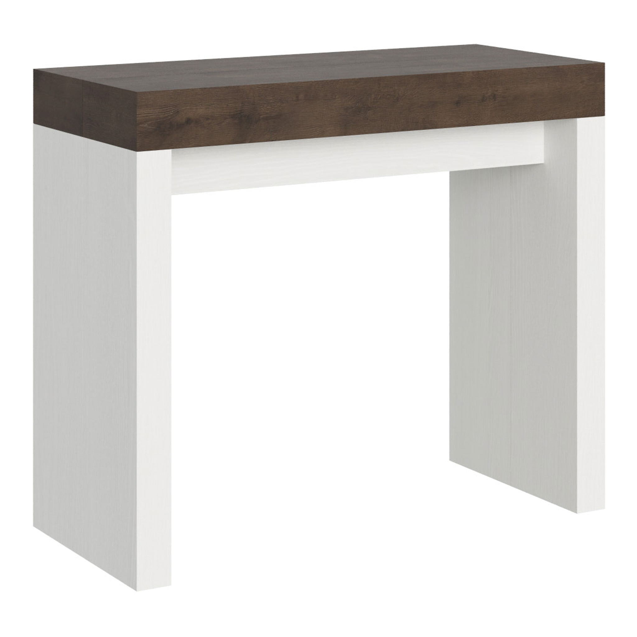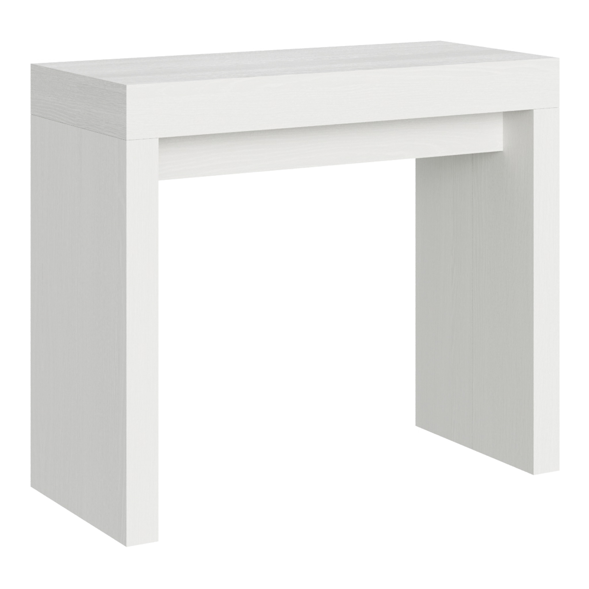 Console extensible Roxell, polyvalente et robuste, un complément parfait pour chaque pièce de la maison : entrée, cuisine, salle à manger, salon ou couloir. La console extensible Roxell peut être facilement transformée en une grande table à manger pouvant atteindre 300 cm de longueur, pouvant accueillir jusqu'à 14 personnes. Realisée avec des panneaux en mélaminé. Le système d'extensions avec des guides télescopiques en aluminium et le support central inclus rendent la console stable et robuste. Une fois que la console est fermée, les extensions doivent être rangées ailleurs. Produit Itamoby Made in Italy Dimensions: Console fermée: L.90 P.40 H.77 cm Longueur avec 1 extension: 92 cm Longueur avec 2 extensions: 144 cm Longueur avec 3 extensions: 196 cm Longueur avec 4 extensions: 248 cm Longueur avec 5 extensions: 300 cm