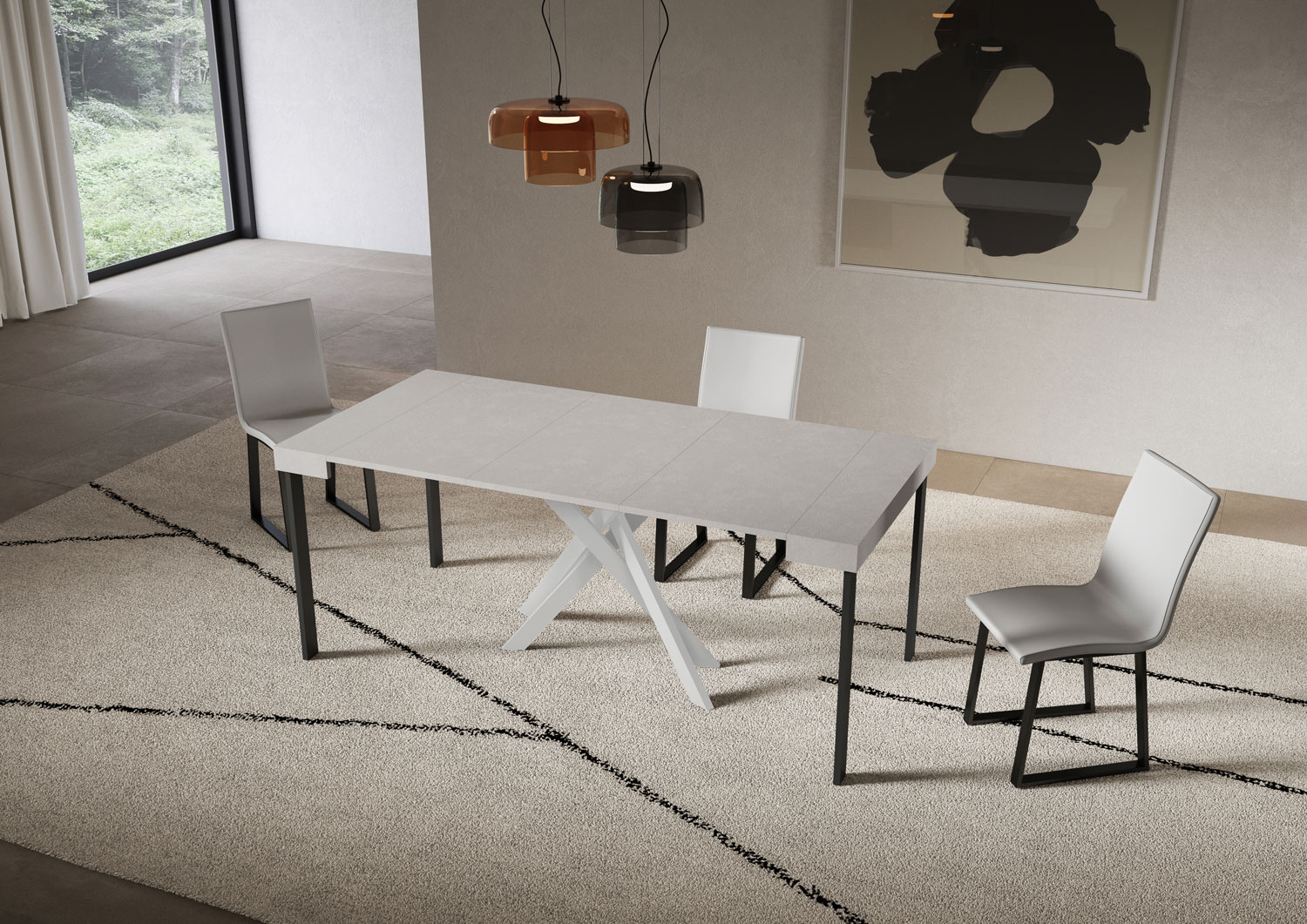 Console extensible Saki , polyvalente et robuste, un complément parfait pour chaque pièce de la maison : entrée, cuisine, salle à manger, salon ou couloir. La console extensible Saki peut être facilement transformée en une grande table à manger pouvant atteindre 300 cm de longueur, pouvant accueillir jusqu'à 14 personnes. Realisée avec des panneaux en mélaminé, pieds en fer. Le système d'extensions avec des guides télescopiques en aluminium et les supports lateraux inclus rendent la console stable et robuste. Une fois que la console est fermée, les extensions doivent être rangées ailleurs. Produit Itamoby Made in Italy Dimensions: Console fermée: L.90 P.40 H.77 cm Longueur avec 1 extension: 92 cm Longueur avec 2 extensions: 144 cm Longueur avec 3 extensions: 196 cm Longueur avec 4 extensions: 248 cm Longueur avec 5 extensions: 300 cm
