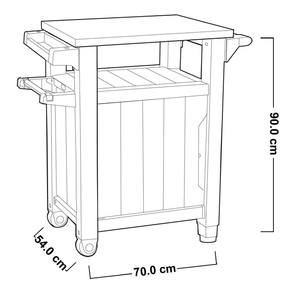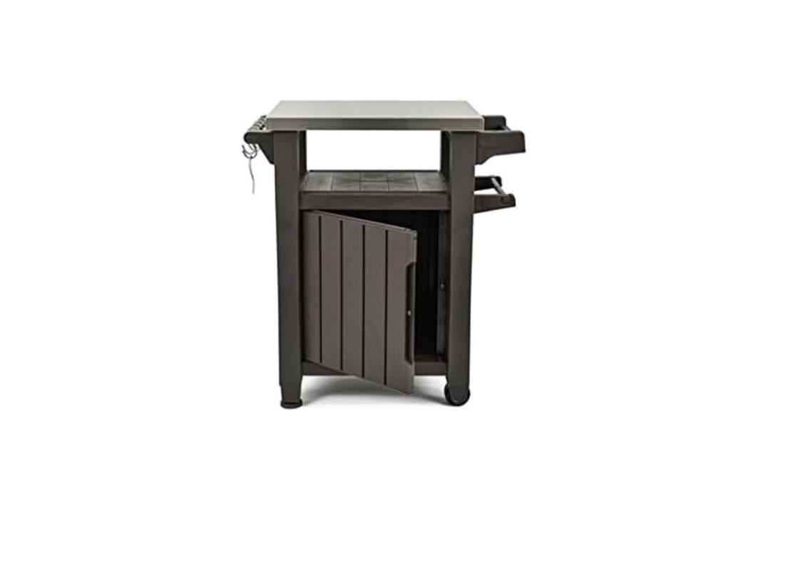 Grâce au compartiment de rangement et aux accessoires intégrés tels qu'un porte-rouleau, un décapsuleur et des crochets à ustensiles, il est parfait pour organiser tout ce dont vous avez besoin dans un seul espace.