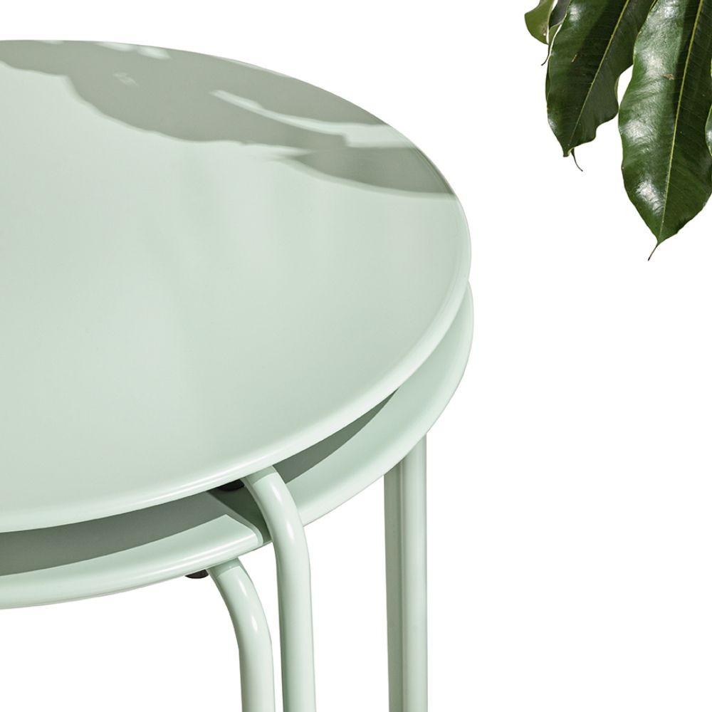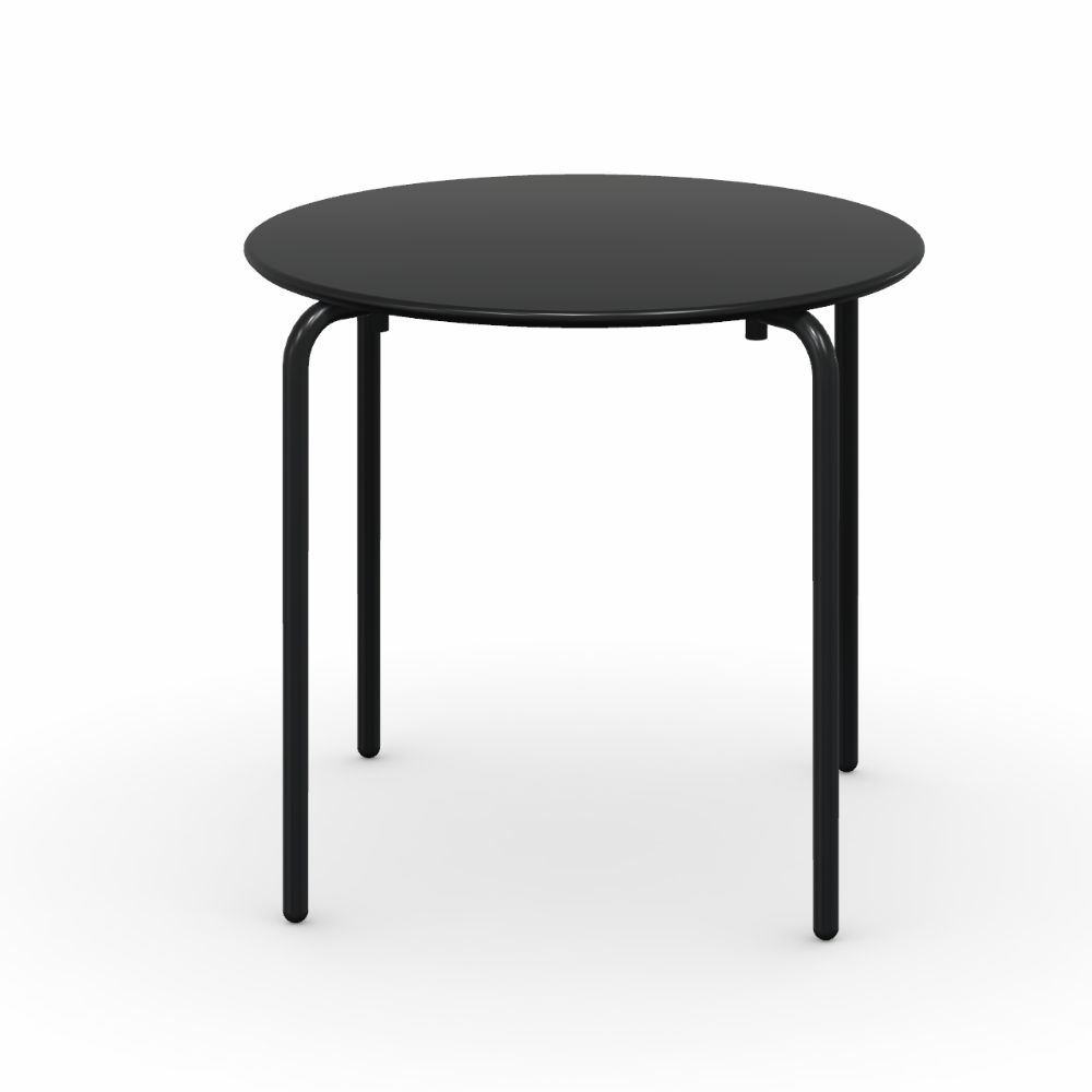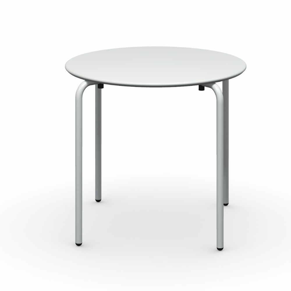 Le cadre de la table est en tube métallique, tandis que le plateau est en tôle profilée.