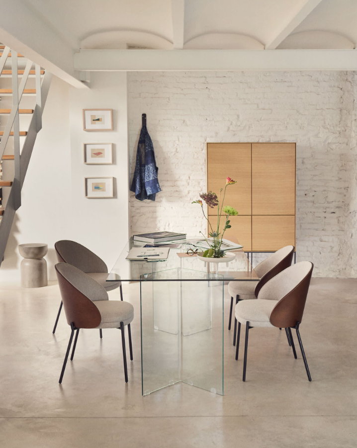 Design minimaliste en verre, aux lignes douces et aux bords arrondis. Idéal pour les petits espaces, il accentue la luminosité et crée une sensation d'espace.