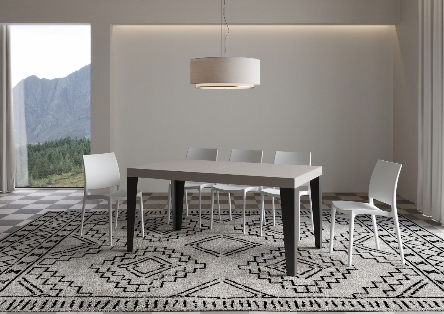 Table extensible Flame Premium de 160 cm, dotée d'un design linéaire, simple et essentiel, cette table s'adapte à tous les styles d'aménagementet se révèle être le choix idéal à la fois comme table à manger et comme élément de décoration pour le salon, permettant d'accueillir vos invités avec style. La table extensible Flame Premium peut s'étendre progressivement jusqu'à 264 cm capable d'accueillir 12 personnes. Table réalisée avec des panneaux en mélaminé, des pieds en fer, plateau et extensions usinés avec une finition de type Folding. Le système d'extension avec des guides télescopiques en aluminium rend la table stable et robuste même lorsqu'elle est totalement allongée, sans avoir besoin de supports supplémentaires. Lorsqu'elles ne sont pas utilisées, les extensions ne sont pas intégrées à la structure de la table et doivent donc être rangées ailleurs. Produit Itamoby Made in Italy Dimensions: Table fermée: L.160 P.90 H.77 cm Longueur avec 1 extension: 212 cm Longueur avec 2 extensions: 264 cm