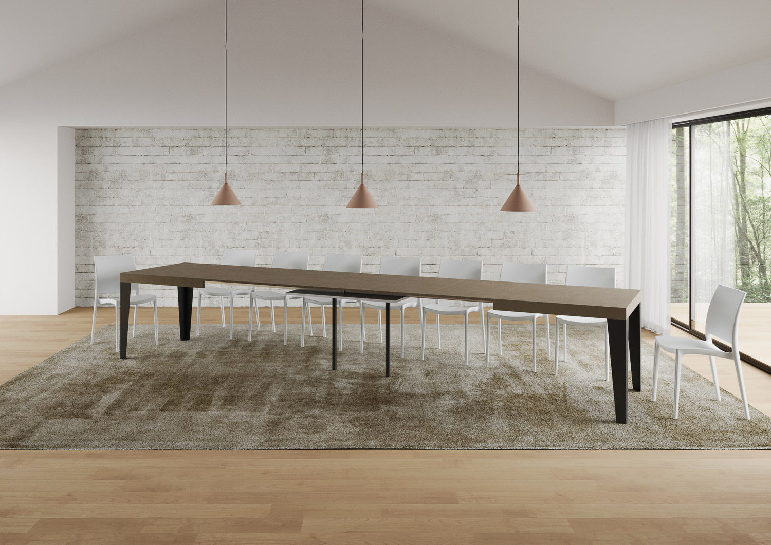 La table extensible Flame peut s'étendre progressivement jusqu'à 460 cm capable d'accueillir 18 personnes.
