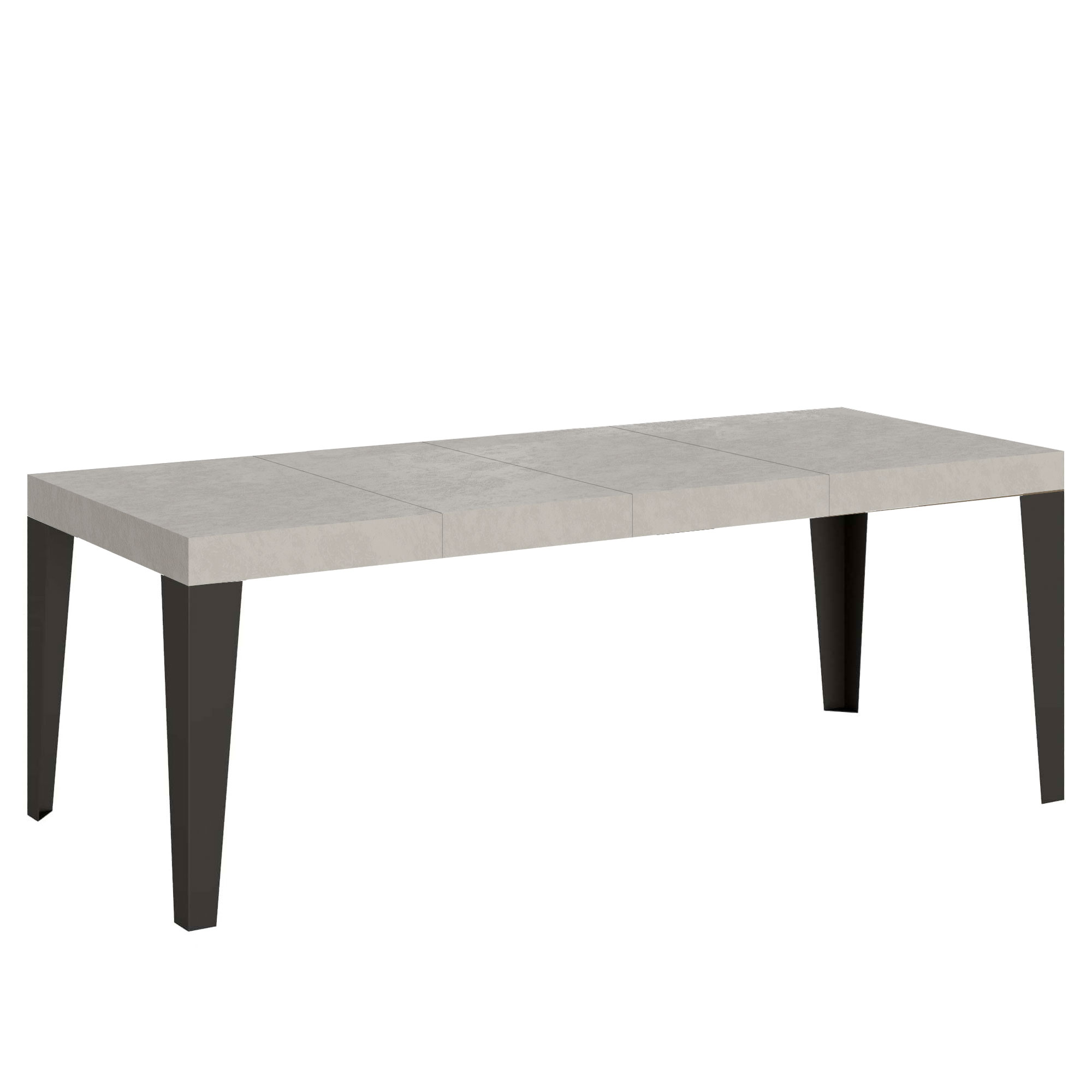 Table réalisée avec des panneaux en mélaminé, des pieds en fer, plateau et extensions usinés avec une finition de type Folding.