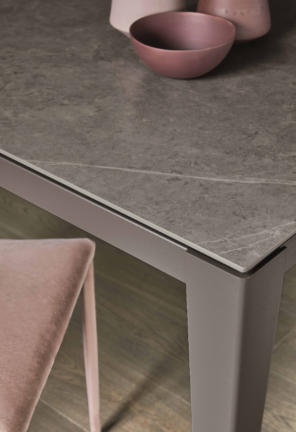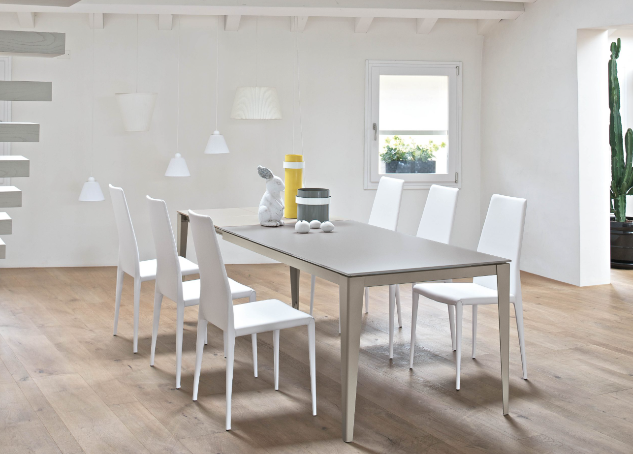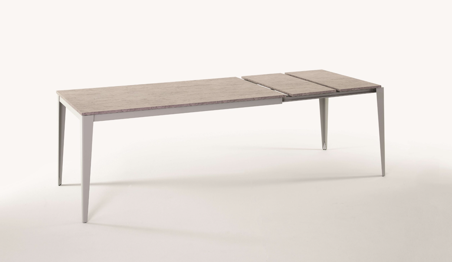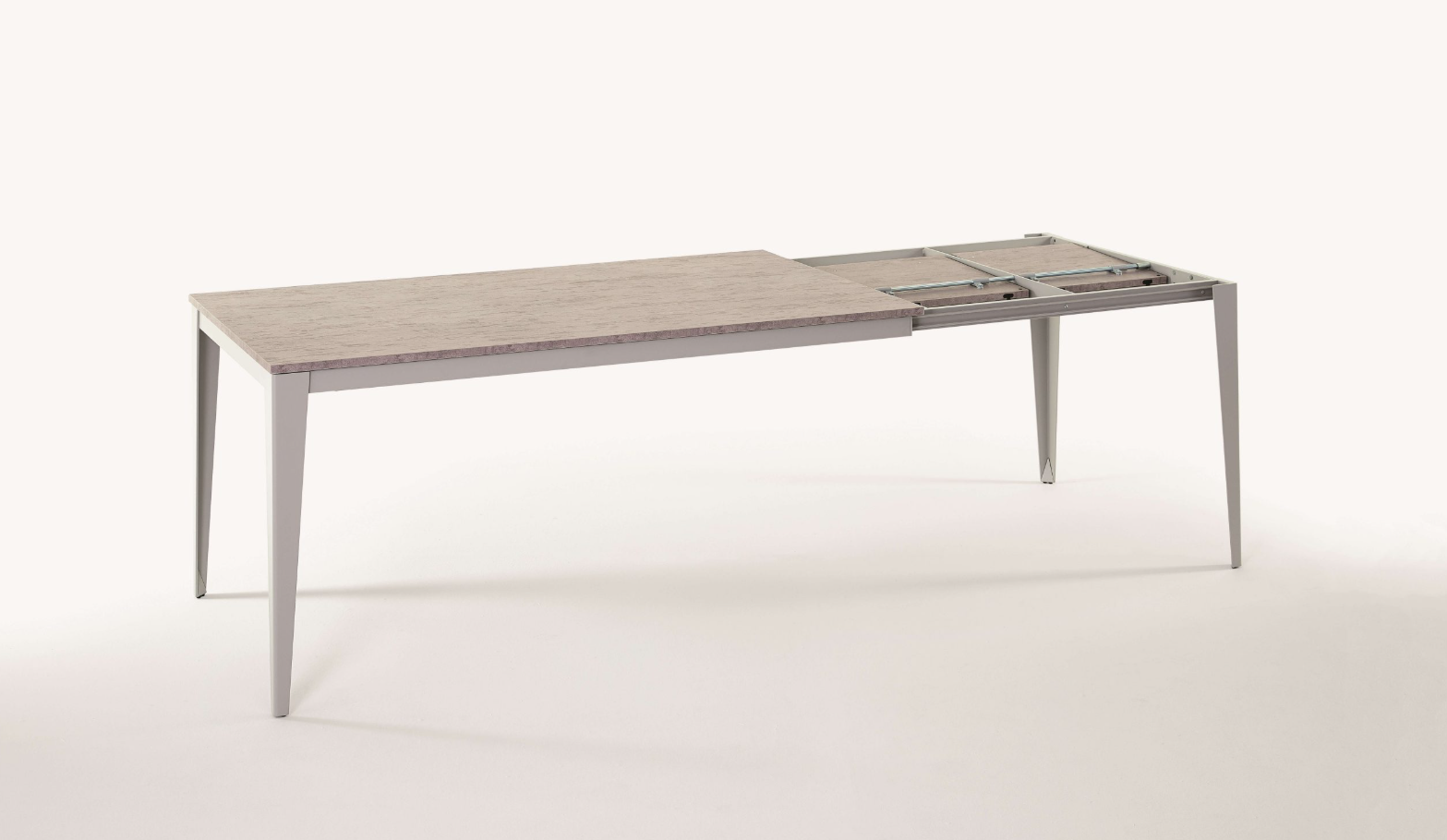 Table extensible au design essentiel et contemporain, avec une structure solide en acier laqué.