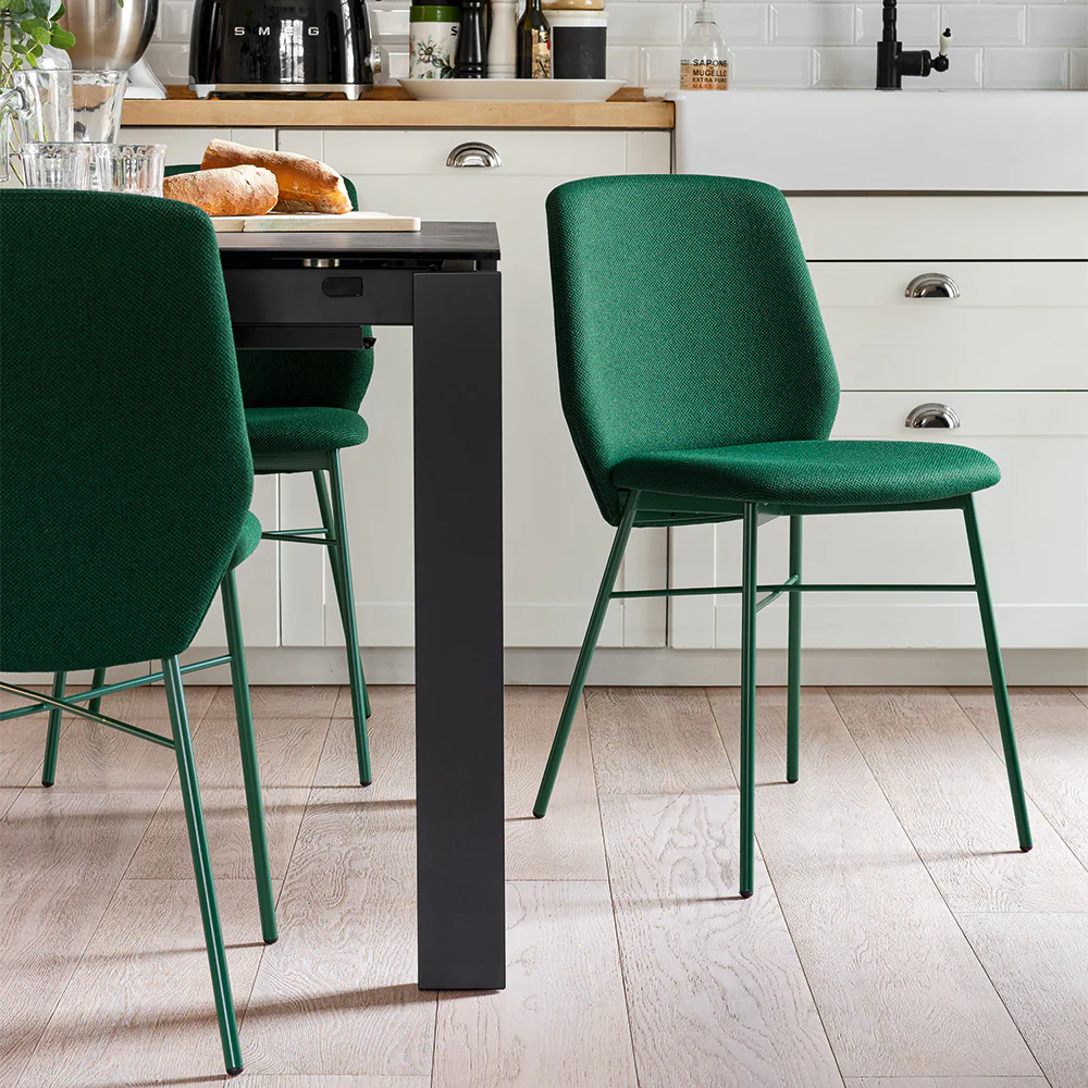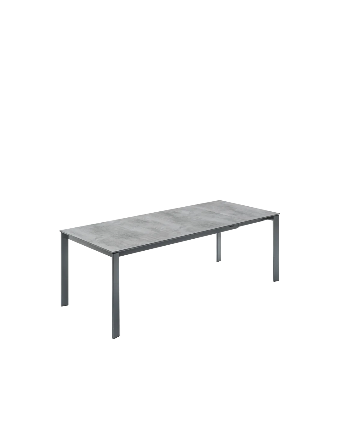 L'extension simple est réalisée en stratifié, assortie au bord du plateau qui présente une combinaison de bois et de verre trempé ou de bois mélaminé.