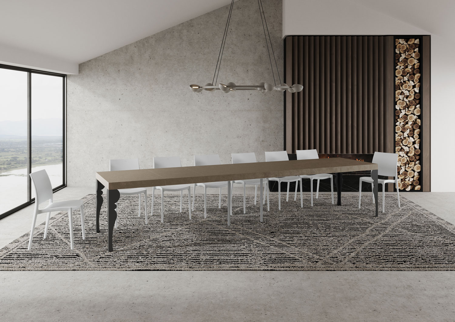 Le système d'extension avec des guides télescopiques en aluminium rend la table stable et robuste même lorsqu'elle est totalement allongée, sans avoir besoin de supports supplémentaires.