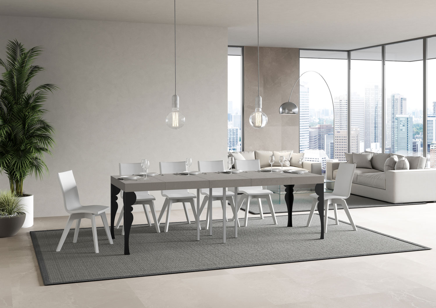 Le système d'extension avec des guides télescopiques en aluminium rend la table stable et robuste même lorsqu'elle est totalement allongée, sans avoir besoin de supports supplémentaires.