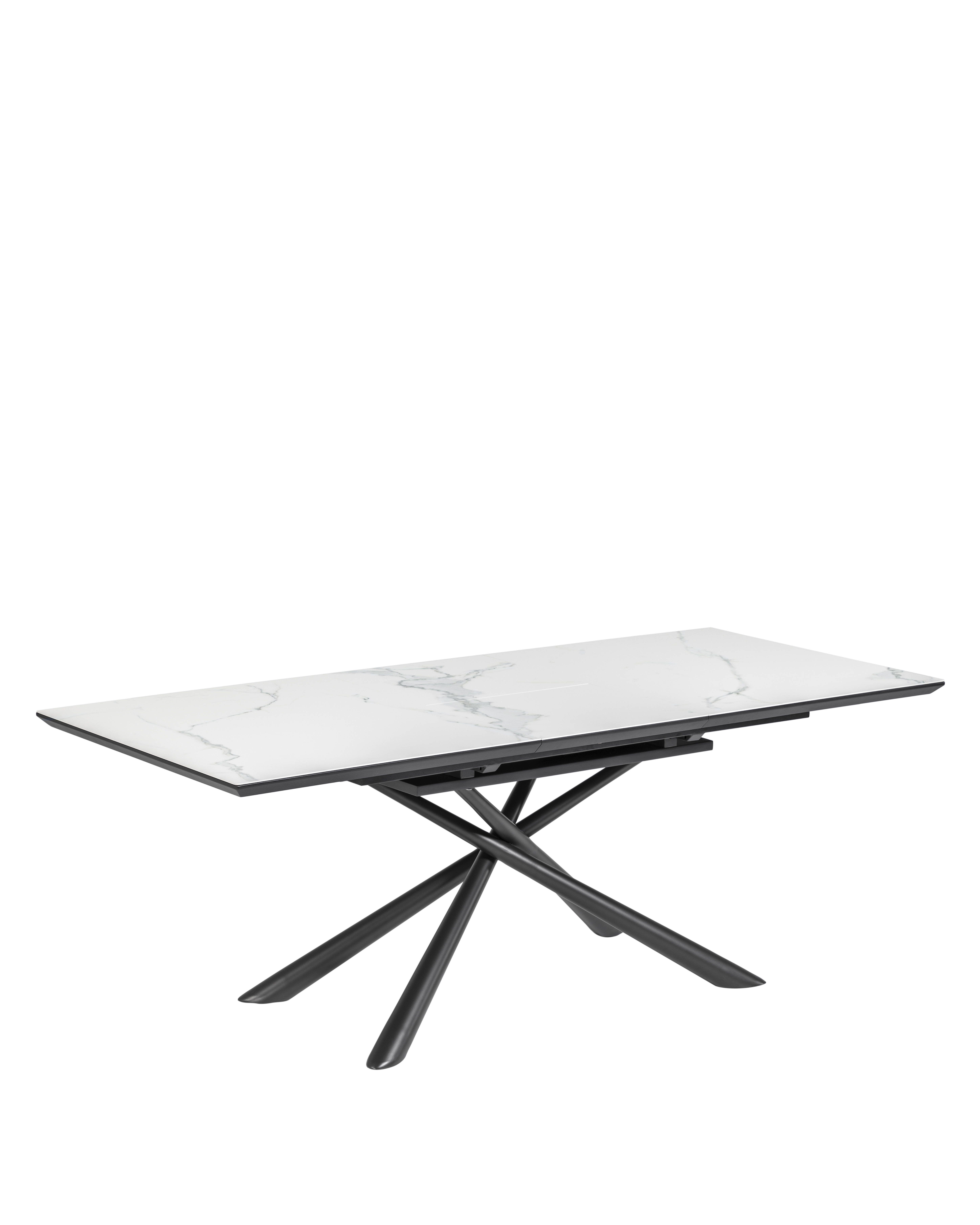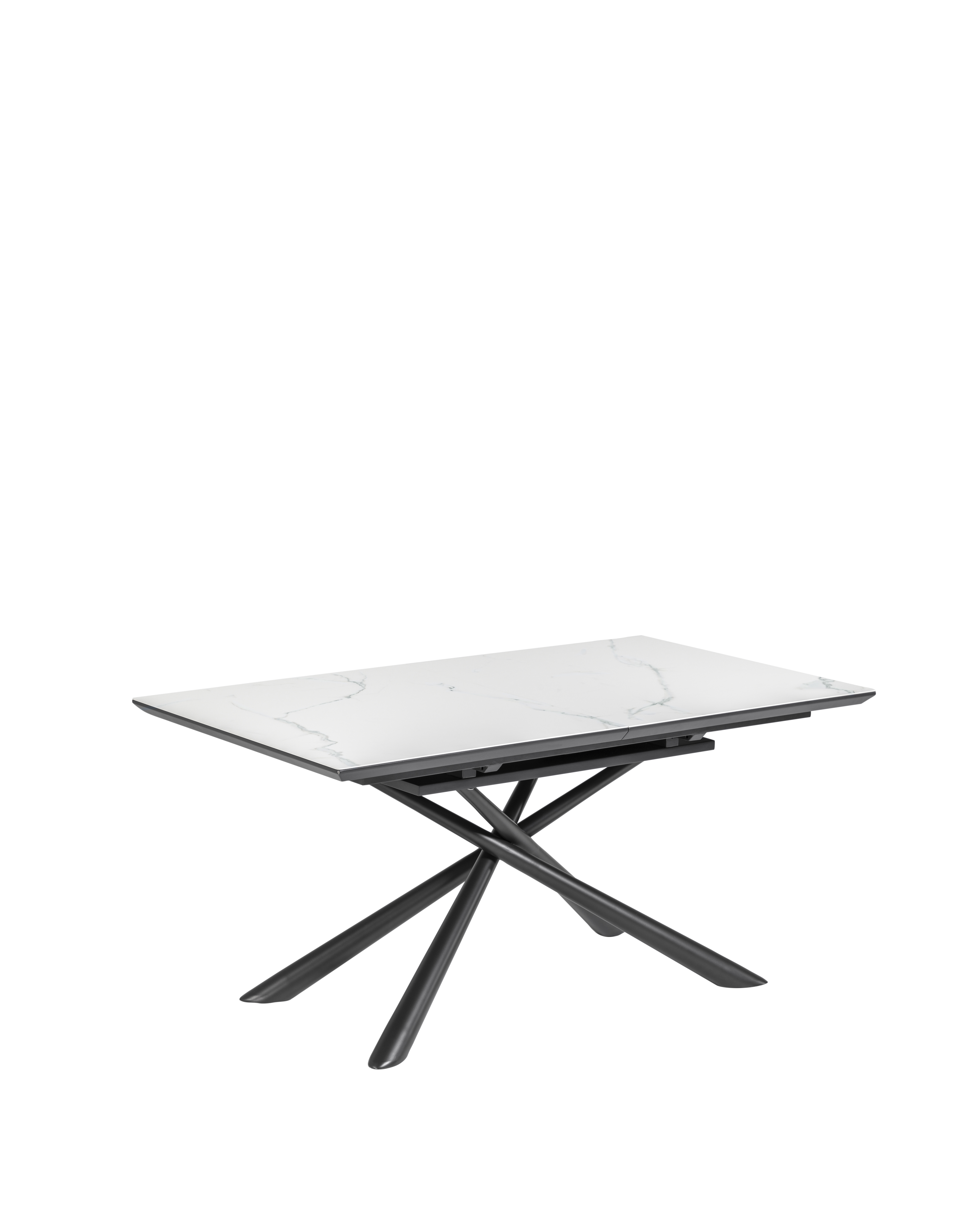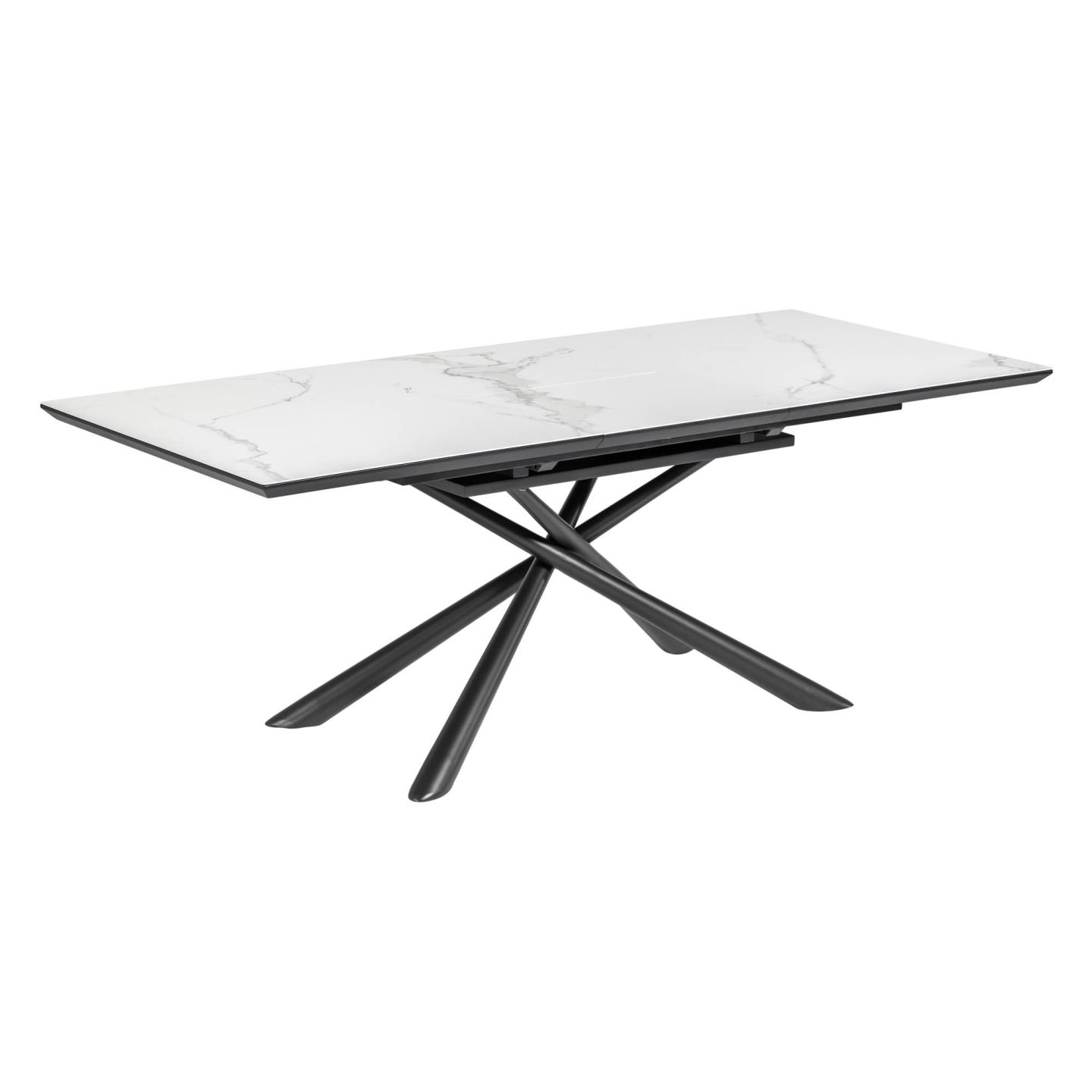 Table extensible Theone en porcelaine blanche avec pieds en acier finition noire, 160 (210) x 90 cm