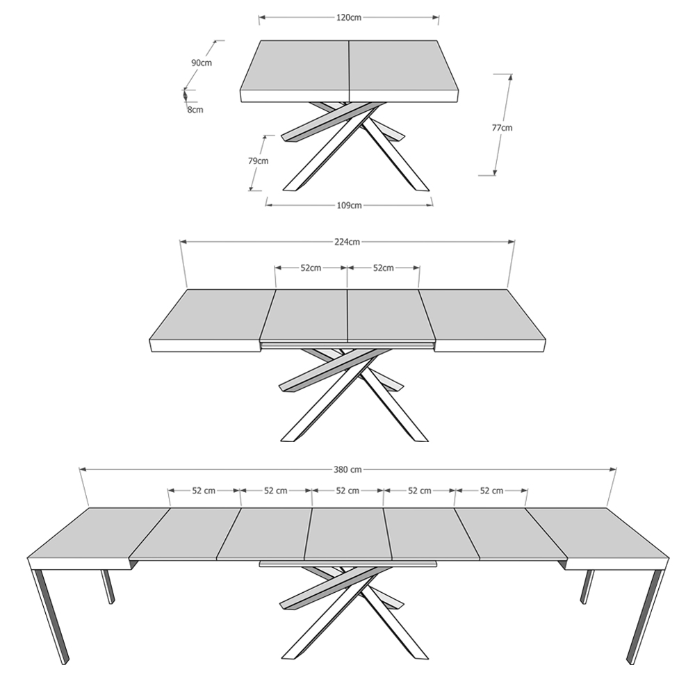 Table extensible Volantis Evolution de 120 cm, dotée d'un design moderne au style sophistiqué, cette table s'adapte à tous les styles d'aménagementet se révèle être le choix idéal à la fois comme table à manger et comme élément de décoration pour le salon, permettant d'accueillir vos invités avec style.
