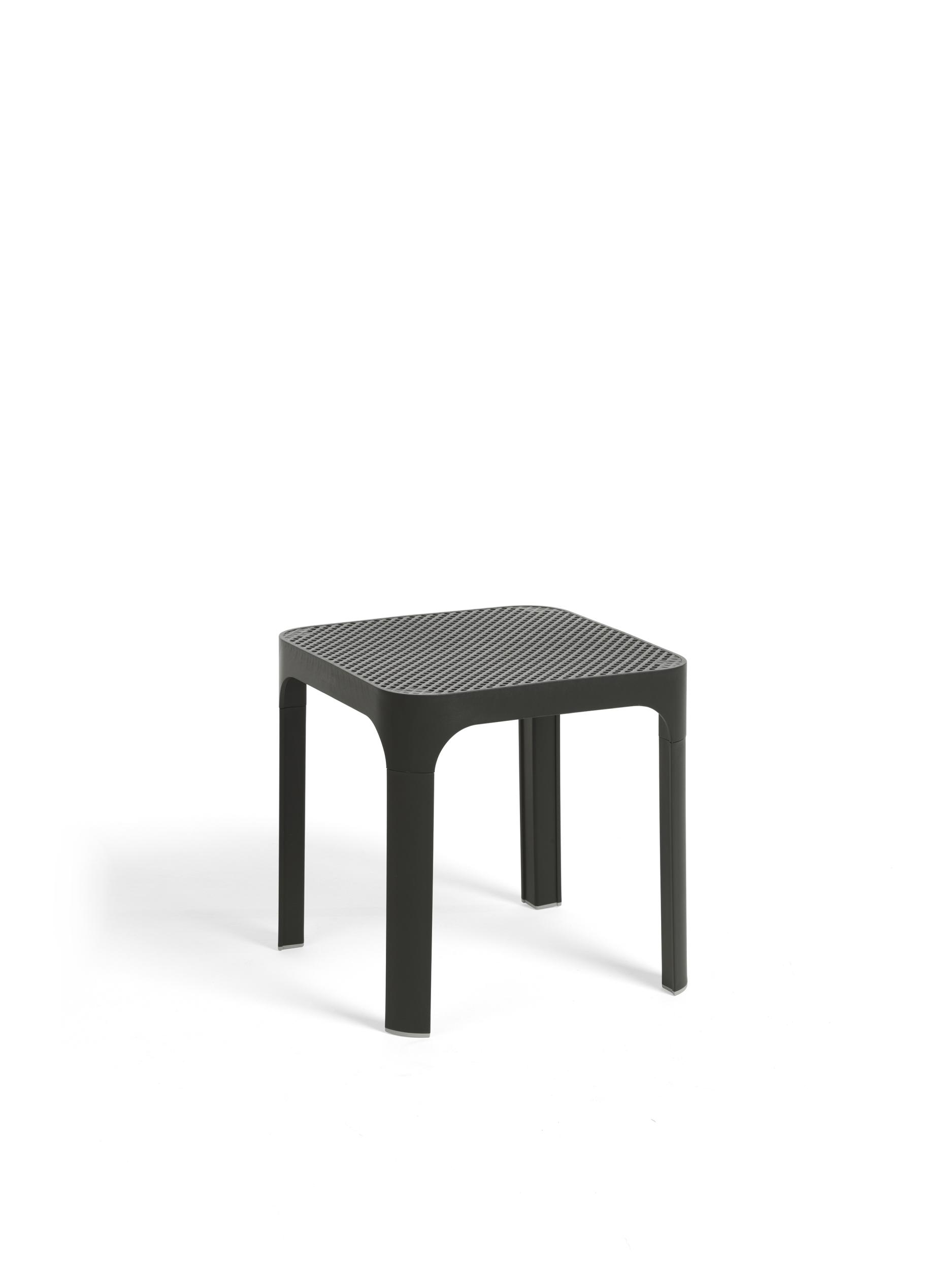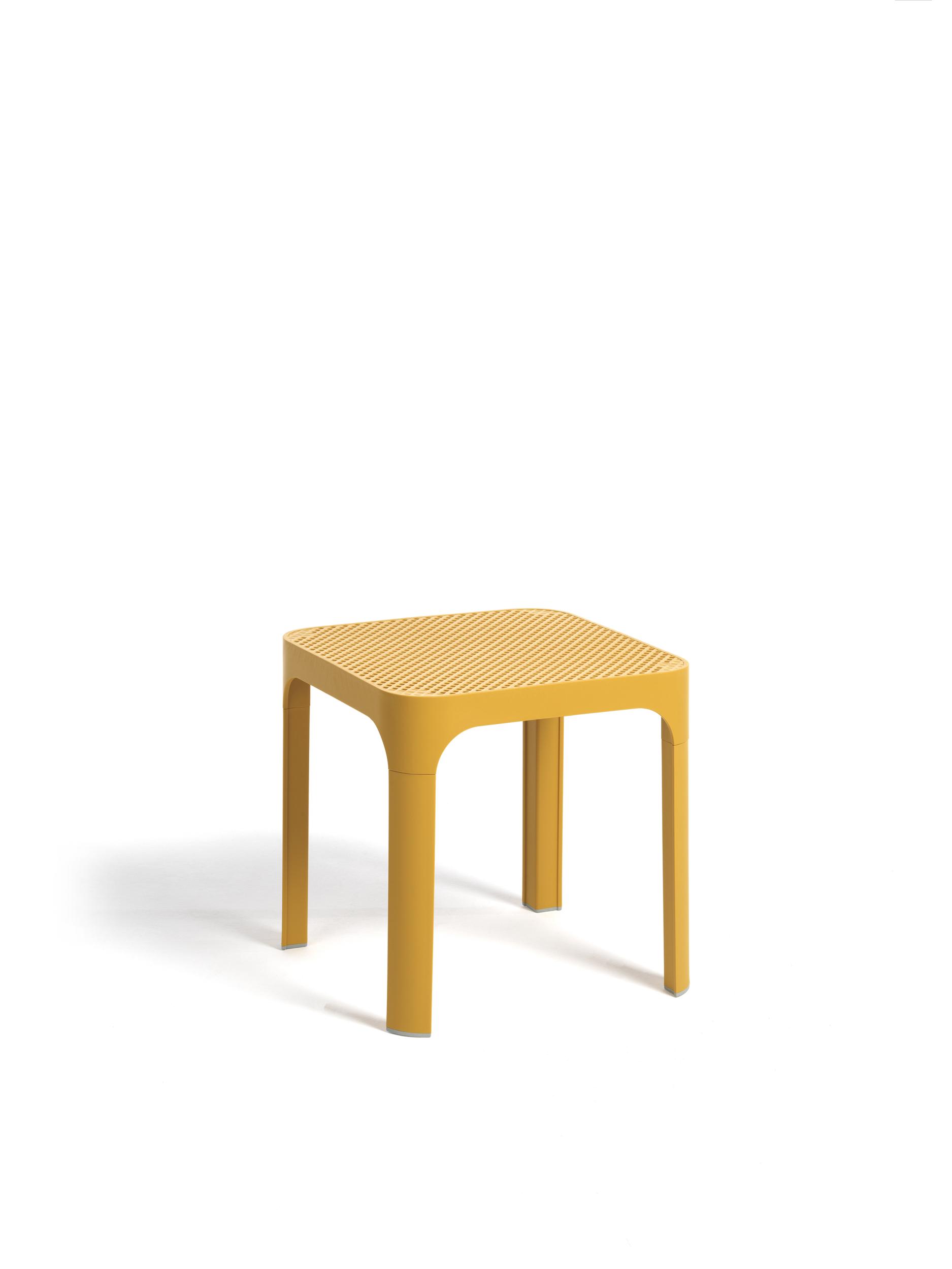 Disponible dans une large gamme de couleurs, la table basse Made in Italy est empilable et possède un plateau carré perforé.