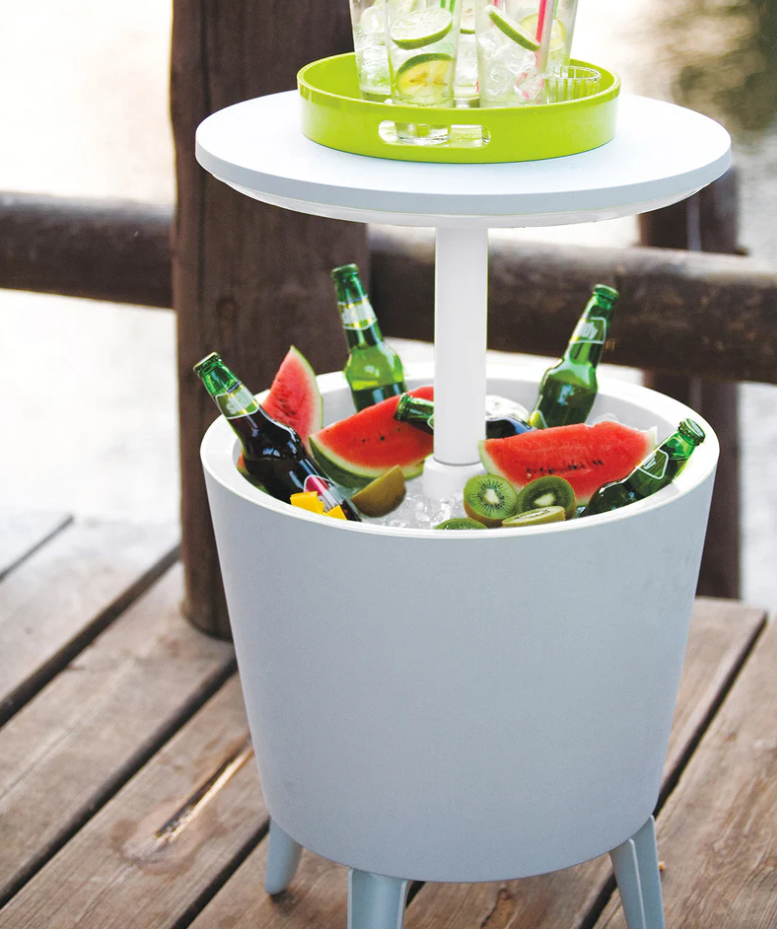 La table de bar Keter Cool est un accessoire polyvalent et design qui combine la praticité d'une table d'extérieur et la fonctionnalité d'un récipient à glace thermique dans un seul produit.
