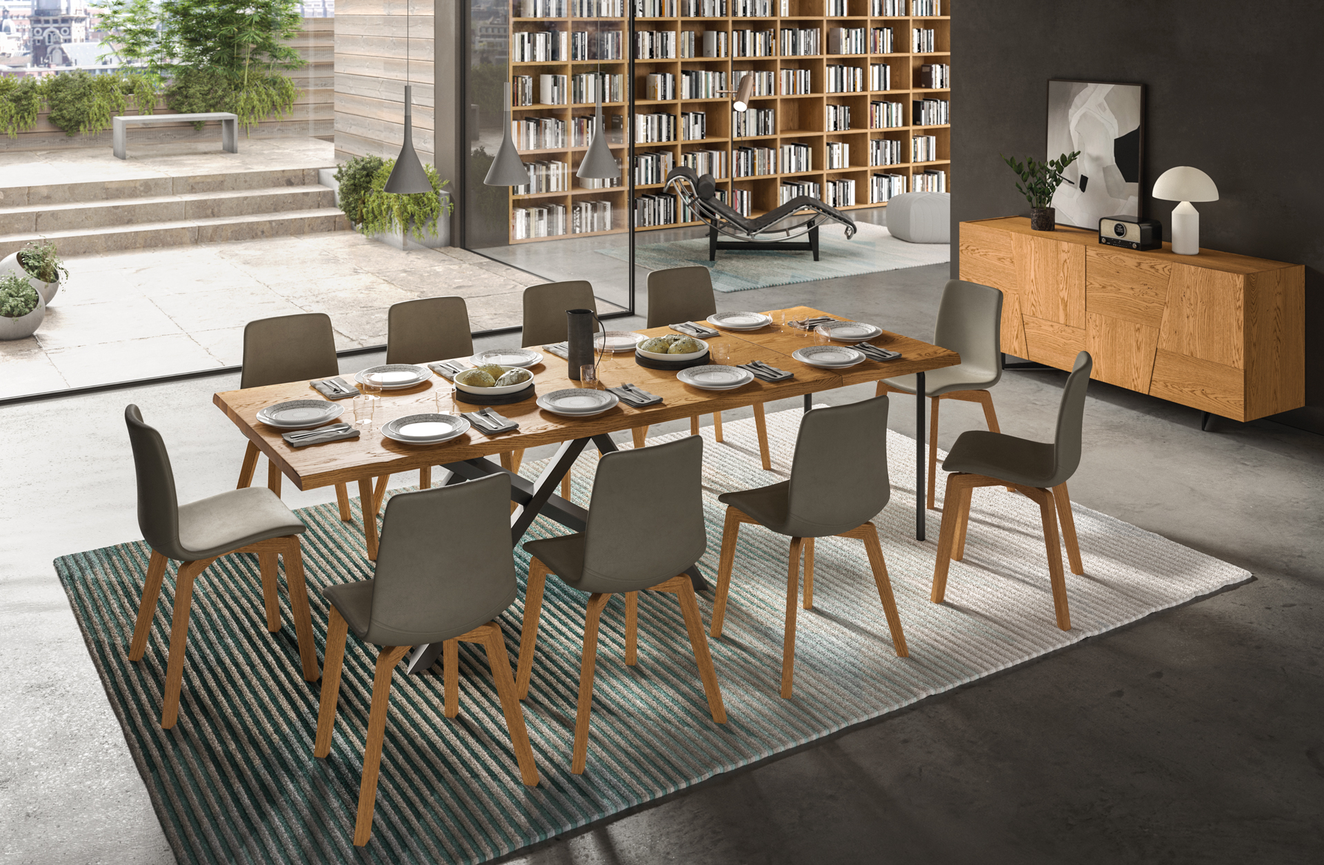La table Crossing est conçue pour répondre à vos besoins. Avec la possibilité de l'étendre avec une ou plusieurs rallonges, vous pourrez facilement recevoir amis et famille, transformant une table compacte en une surface spacieuse et accueillante pour tout événement.