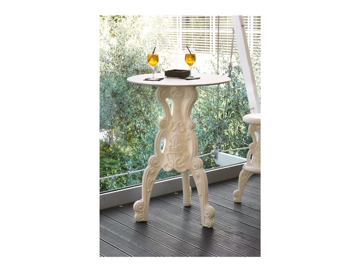 La table haute MASTER OF LOVE fait partie de la ligne Design Of Love Collection, et rappelle le même esprit ironique et luxueux. Avec ses pieds cambrés, caractéristiques des tables de style baroque, mais avec la contemporanéité de ses matériaux, le produit peut être utilisé aussi bien à l'intérieur qu'à l'extérieur et ne peut pas passer inaperçu.
