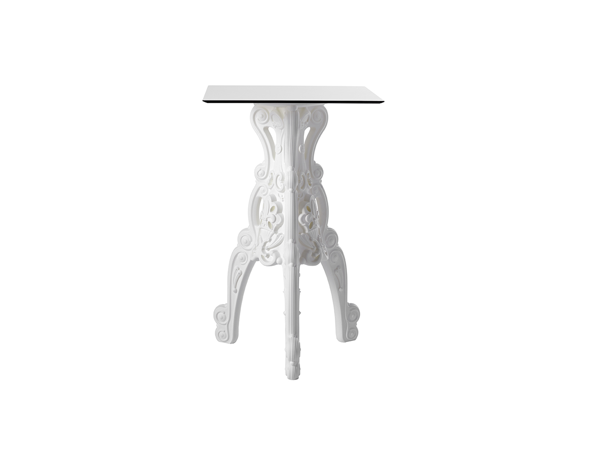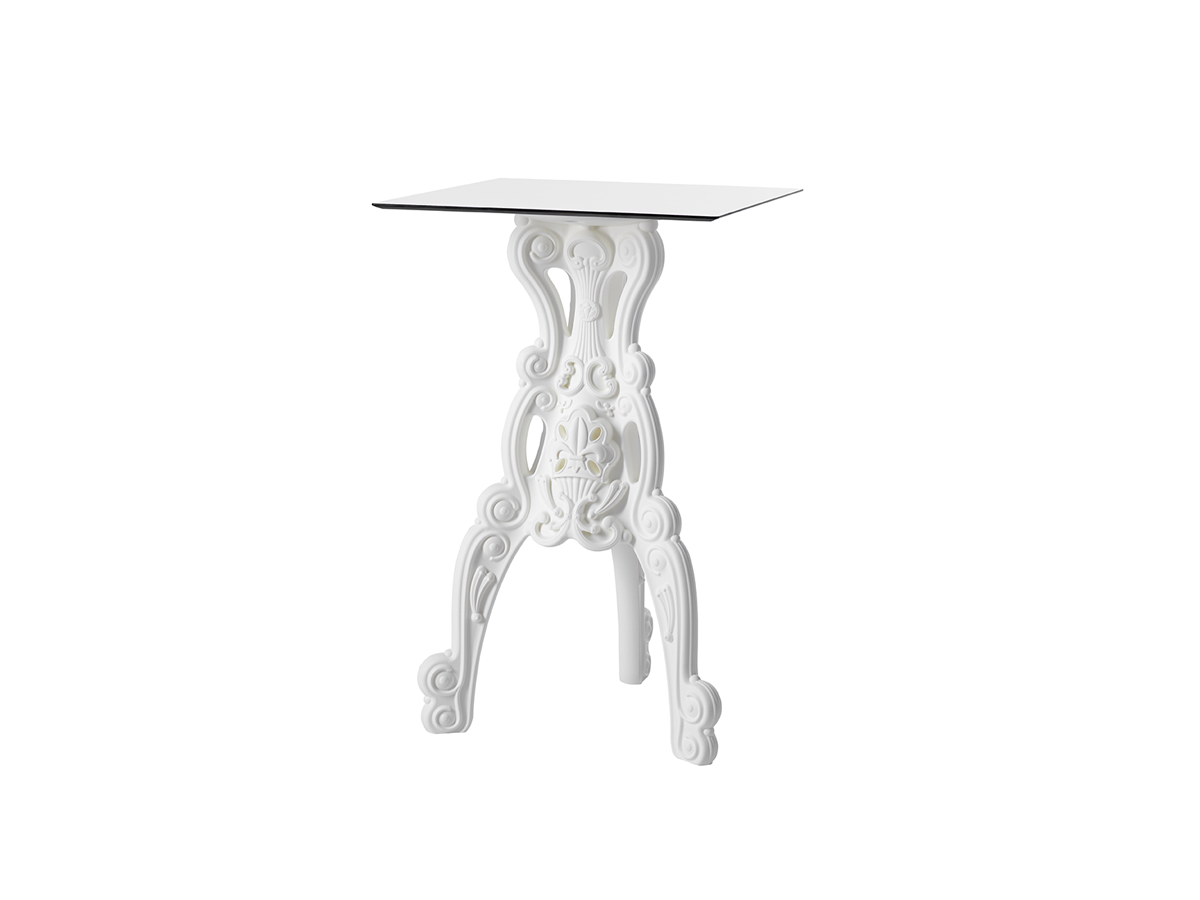 La table haute MASTER OF LOVE fait partie de la ligne Design Of Love Collection, et rappelle le même esprit ironique et luxueux. Avec ses pieds cambrés, caractéristiques des tables de style baroque, mais avec la contemporanéité de ses matériaux, le produit peut être utilisé aussi bien à l'intérieur qu'à l'extérieur et ne peut pas passer inaperçu.