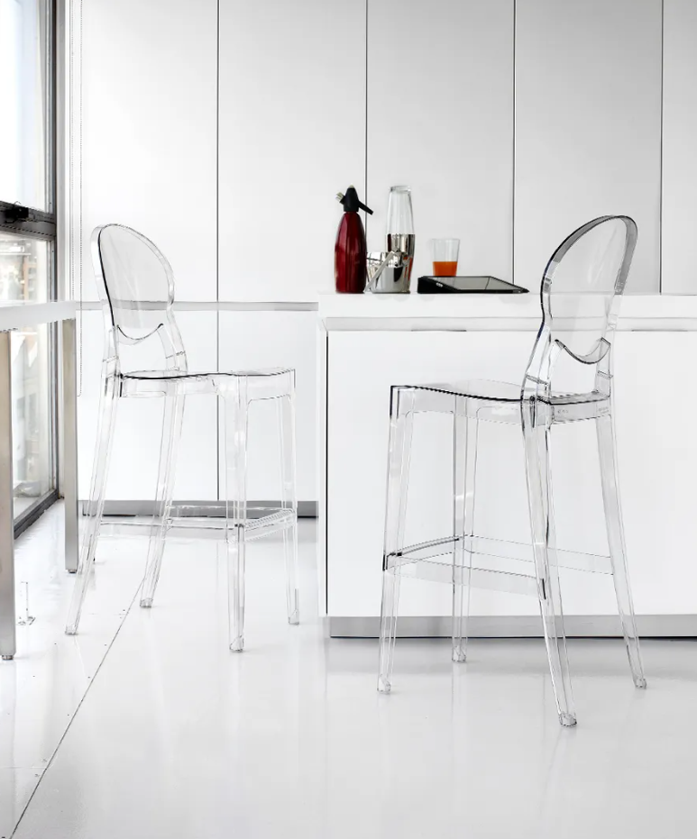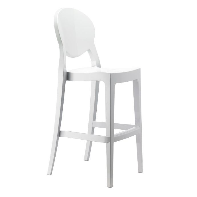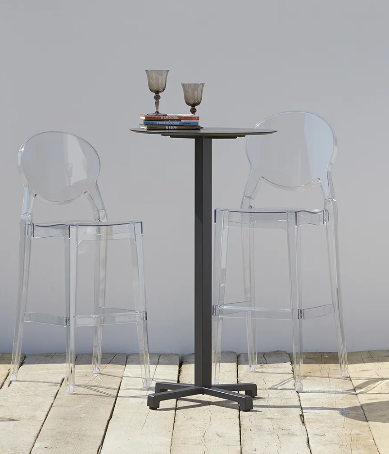 Le tabouret Igloo est fabriqué en polycarbonate recyclable, un matériau durable et léger adapté à une utilisation intérieure et extérieure.