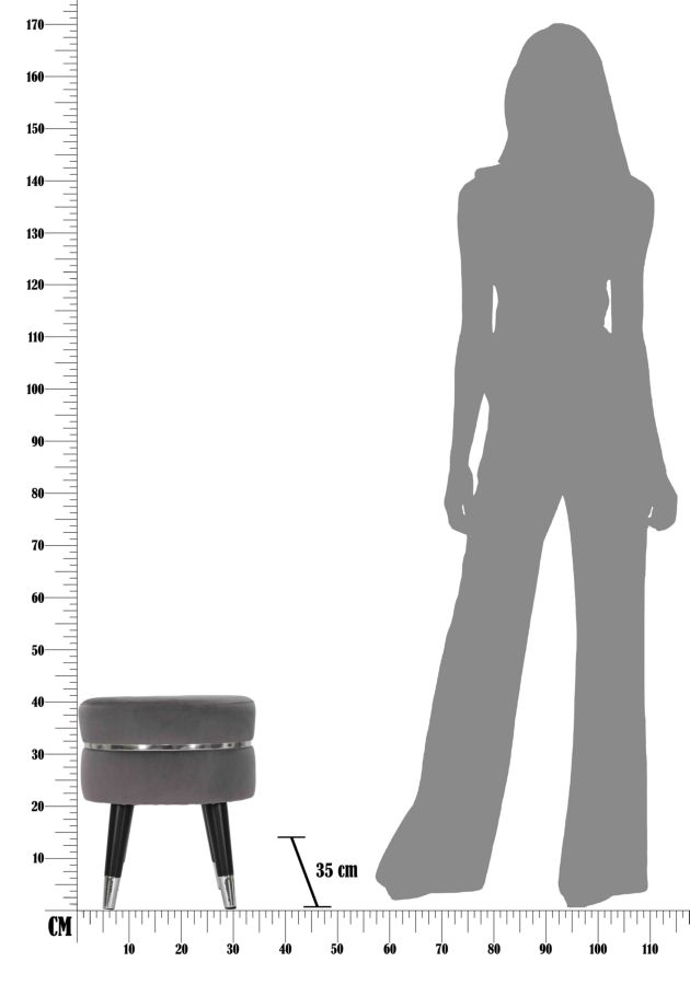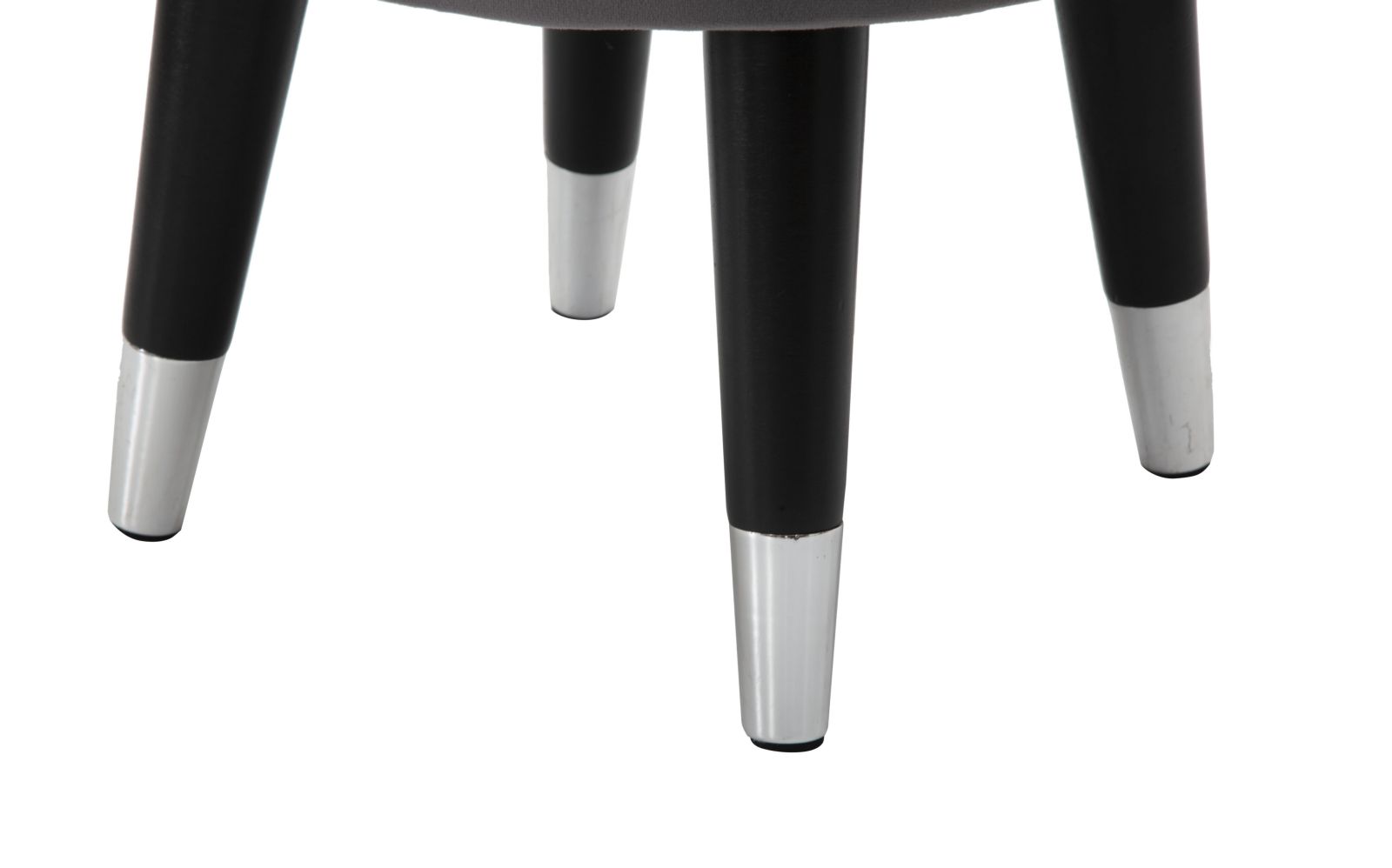 Tabouret en bois et velours gris. Des sièges avec une finition argentée inspirés des cabines d'essayage des grandes divas hollywoodiennes. Idéal à placer dans la chambre ou dans le salon pour se sentir comme une star.