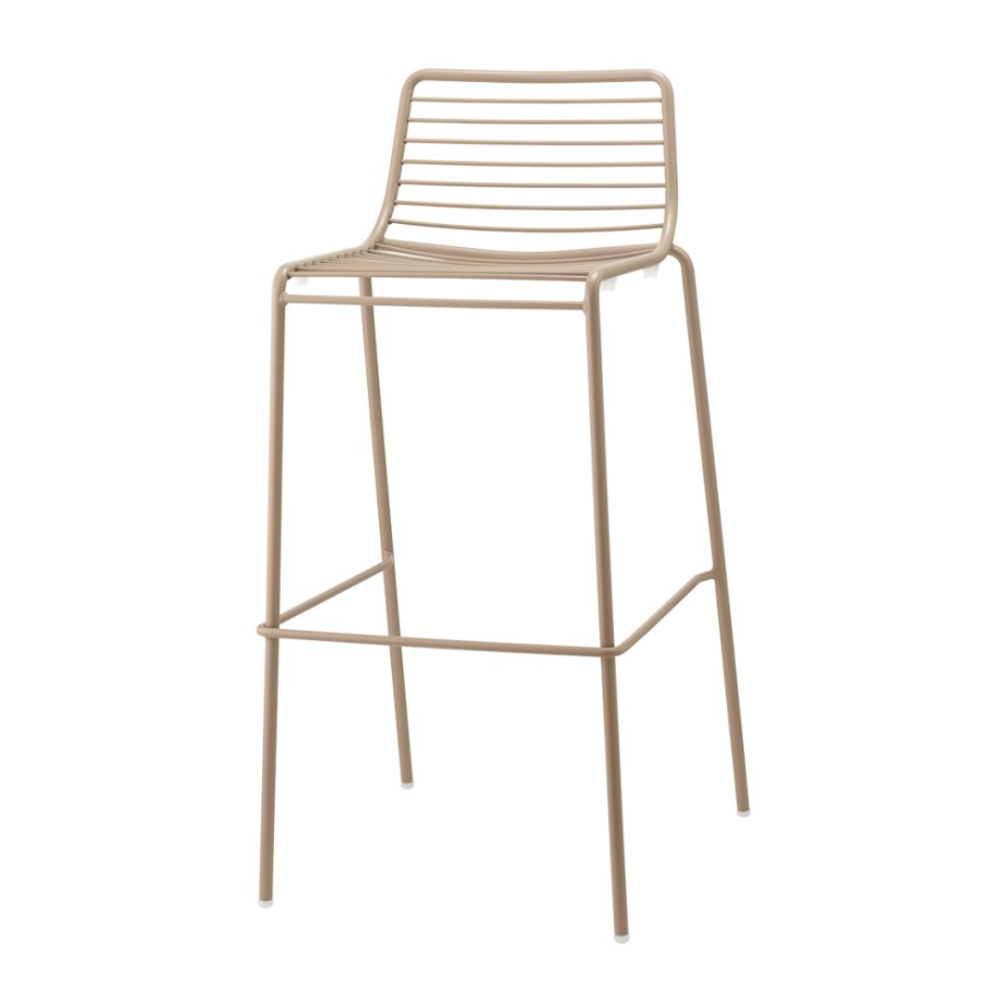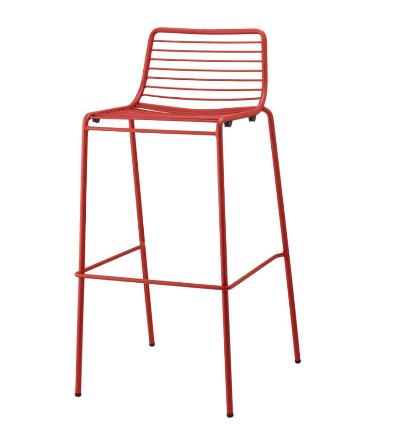 Les sièges légers et empilables offrent une praticité sans sacrifier le style, tandis que les tables, dans la version haute de 75 cm, complètent l'ensemble avec équilibre et fonctionnalité.