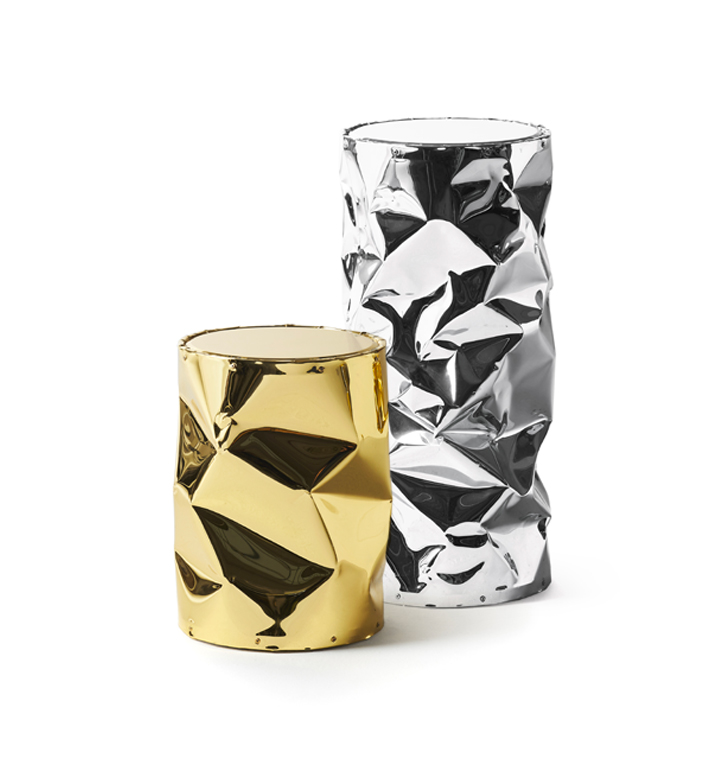 Tab.u, par Opinion Ciatti, est un tabouret en aluminium conçu par Bruno Rainaldi et se caractérise par son design froissé, un véritable objet cool.