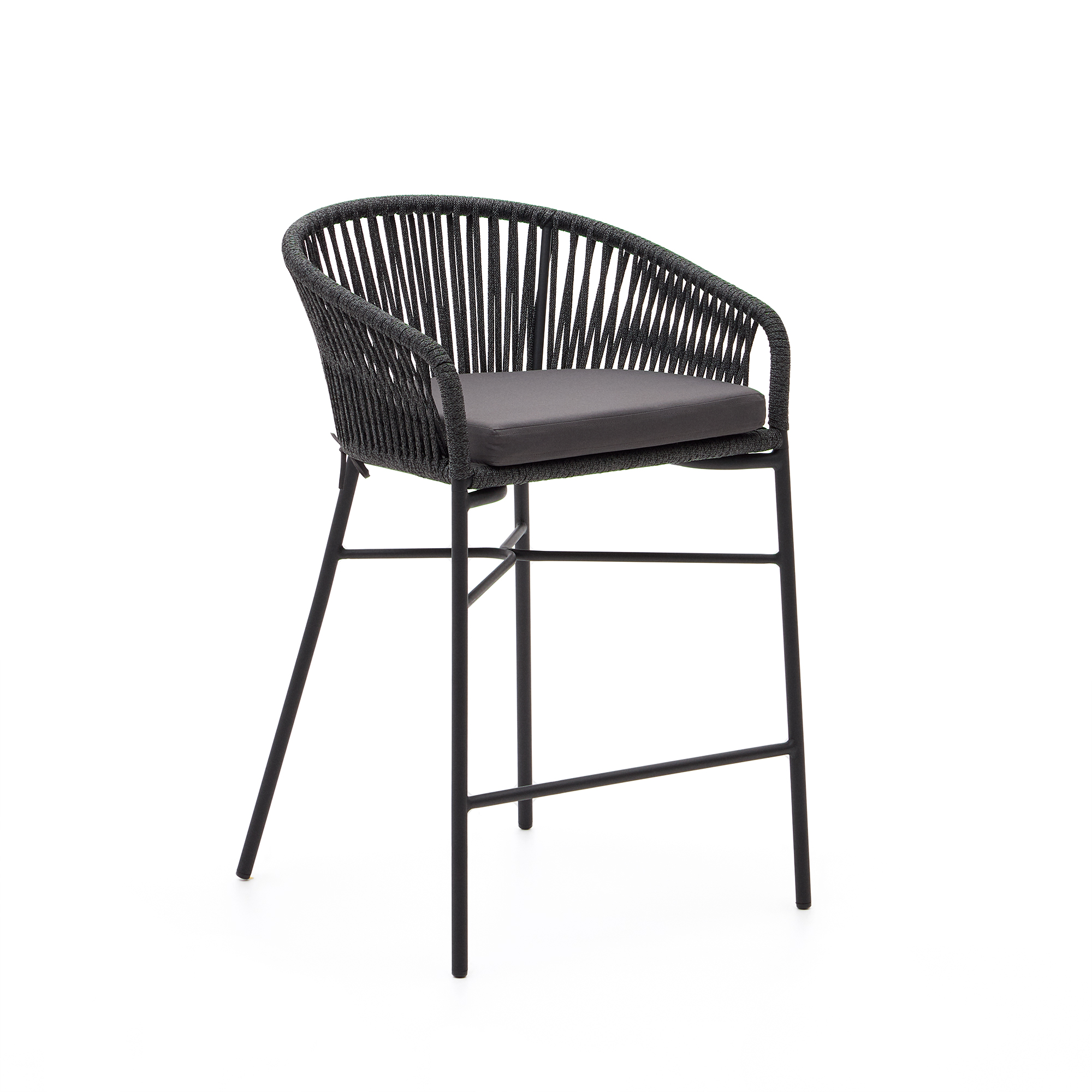 Tabouret Yanet en corde noire, hauteur 65 cm