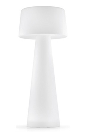 Le lampadaire rotomoulé en polyéthylène produit une lumière diffuse grâce à la couleur blanc opale.