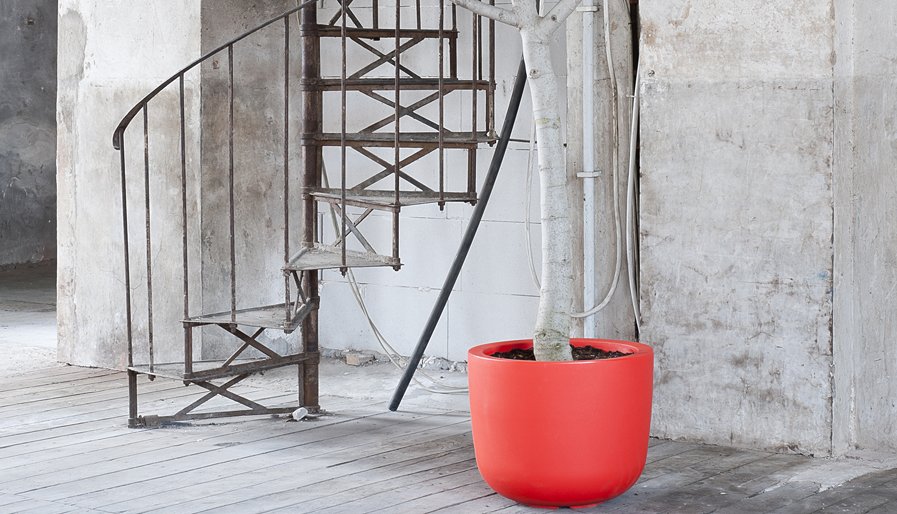 Des vases d'extérieur d'inspiration archaïque, comme des bols en bois sculpté. Des lignes pures, pour des pots de jardin au design simple et discret, qui ont déjà le parfum classique.