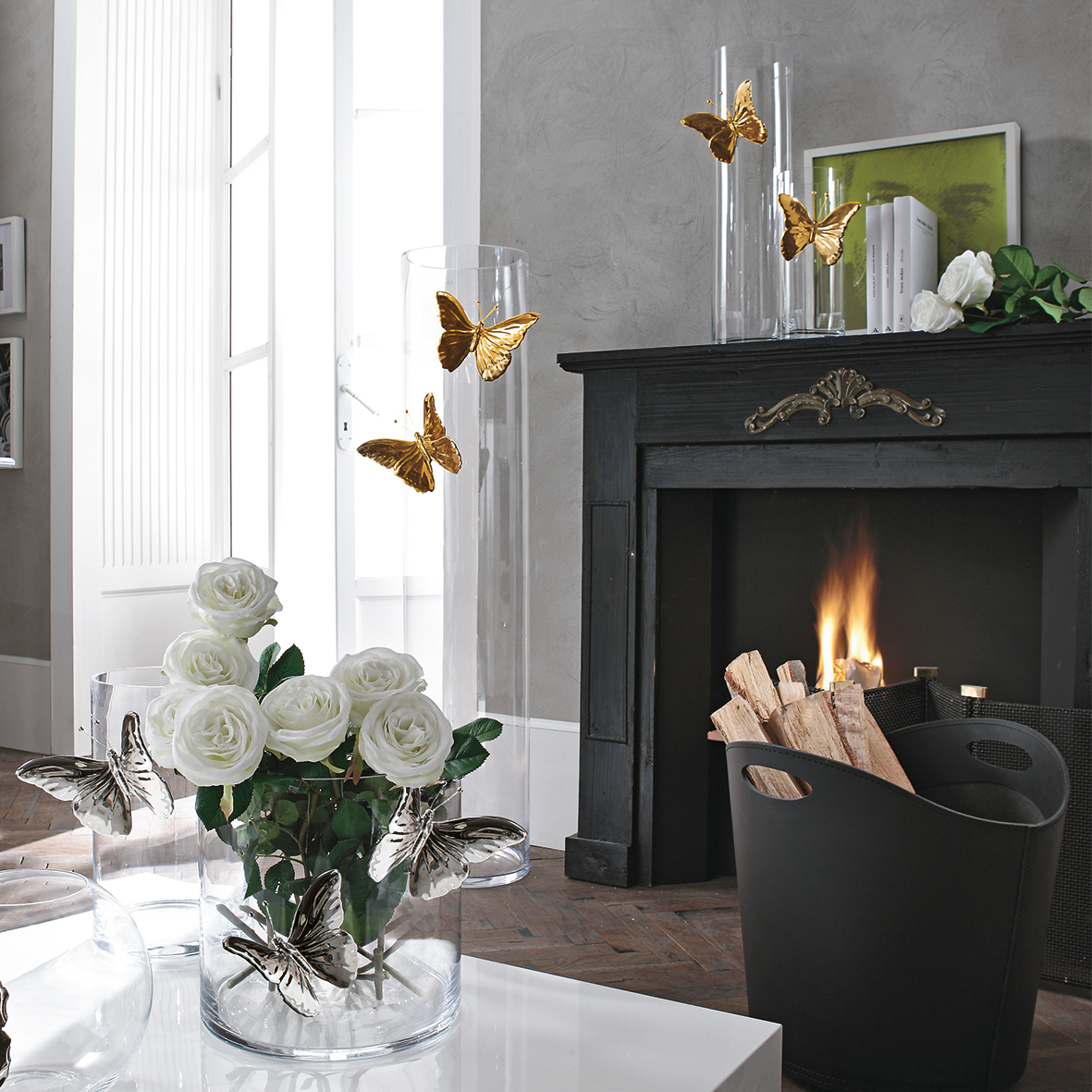 Vase en verre transparent Papillon en céramique