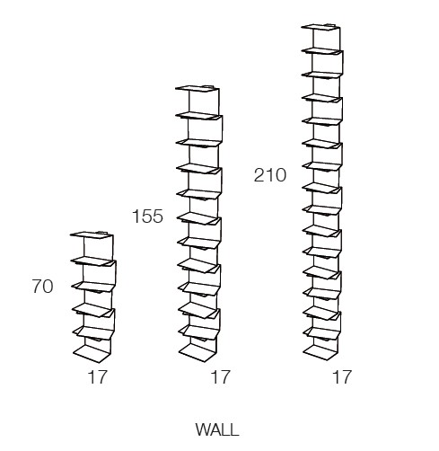 Absolument indispensable est la solution idéale pour ceux qui ont peu d'espace et veulent exploiter la verticalité de l' environnement . Ptolomeo Wall est parfait pour créer des colonnes de livres potentiellement infini et peut contester toute loi de la gravité. Dans les appartements normaux ou les lofts très hauts, aucun plafond ne peut être atteint en modulant de manière experte les trois tailles dans lesquelles Ptolomeo Wall est fabriqué.