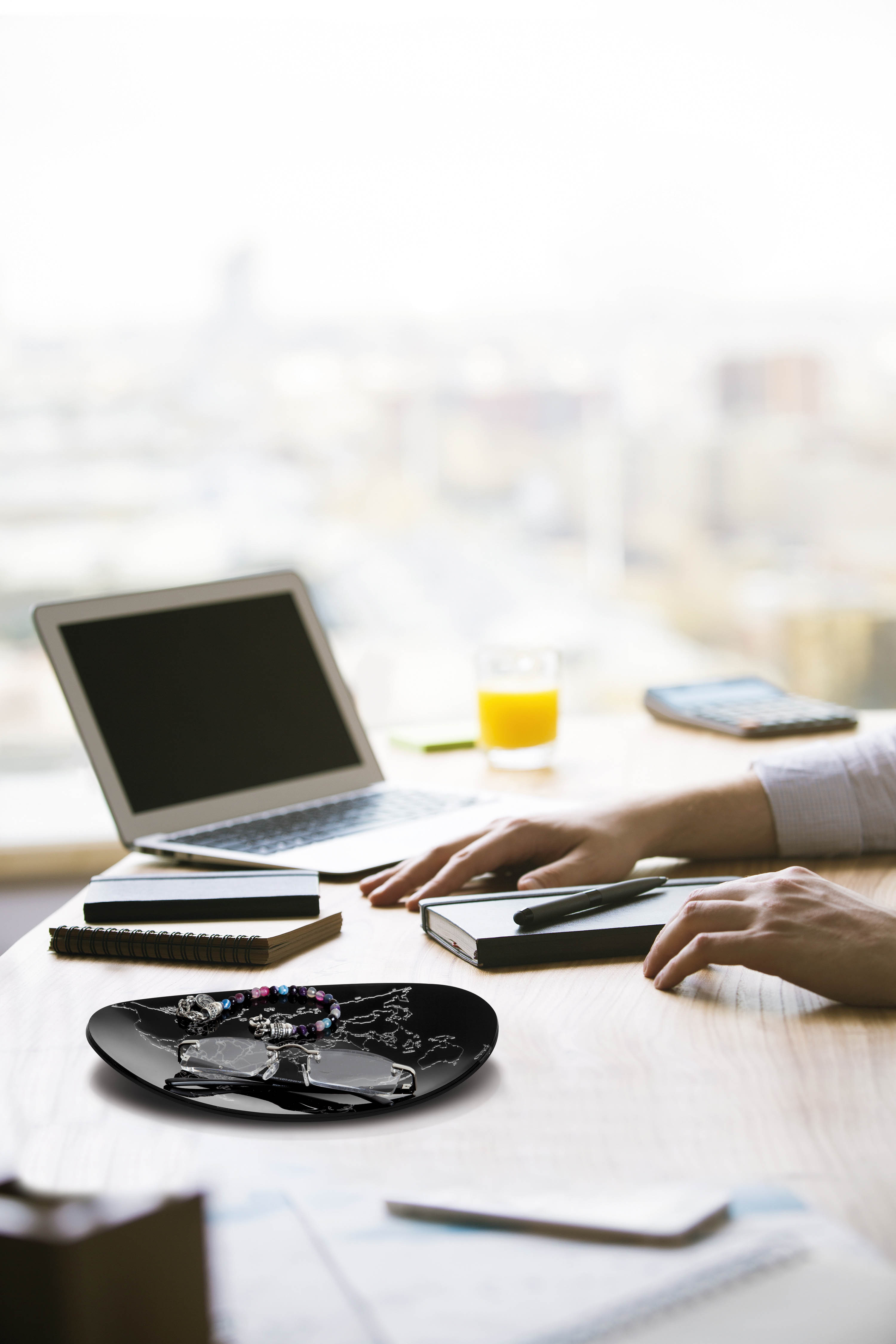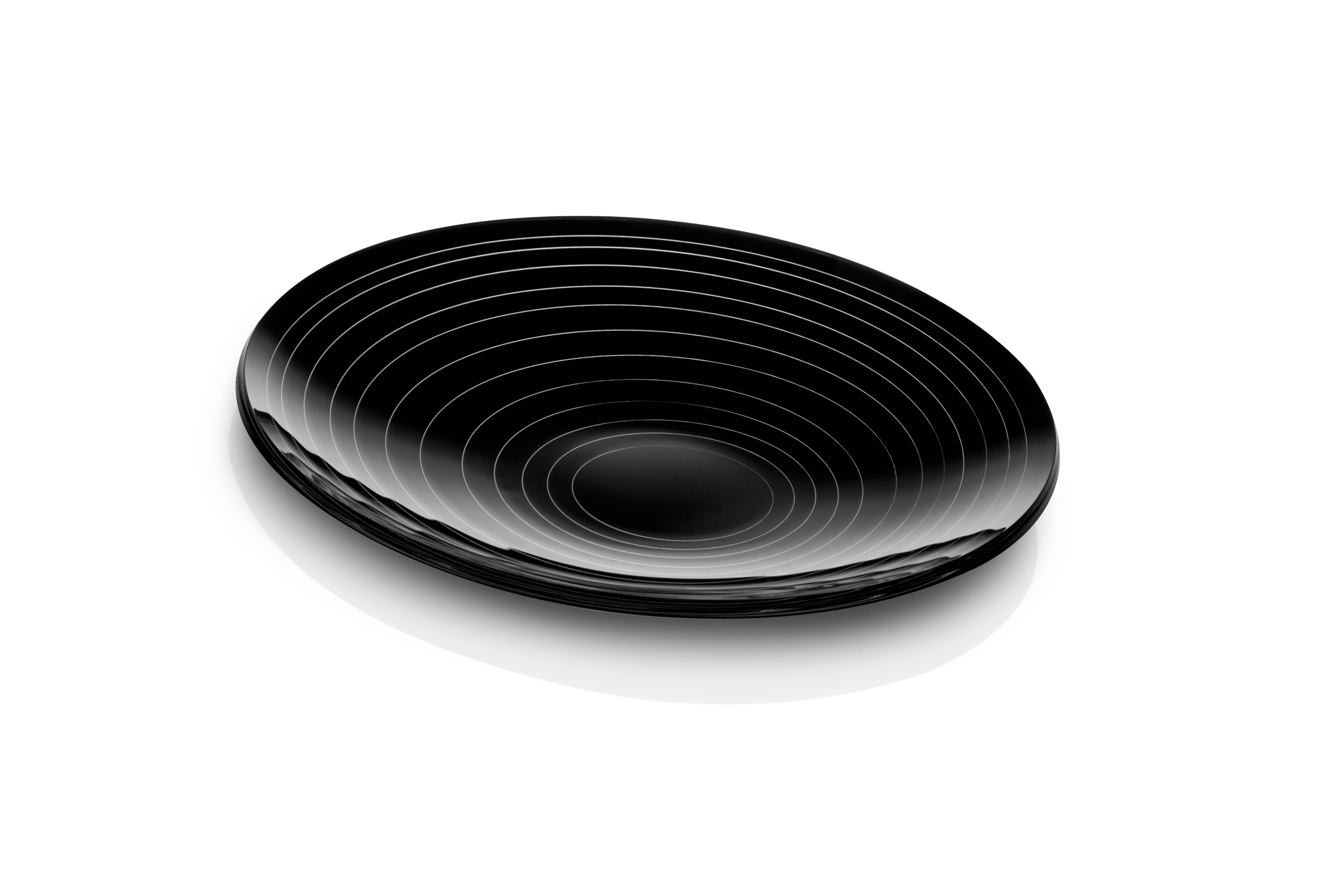 Plateau de poche en cristal acrylique bicolore avec cercles concentriques ou gravure du monde.