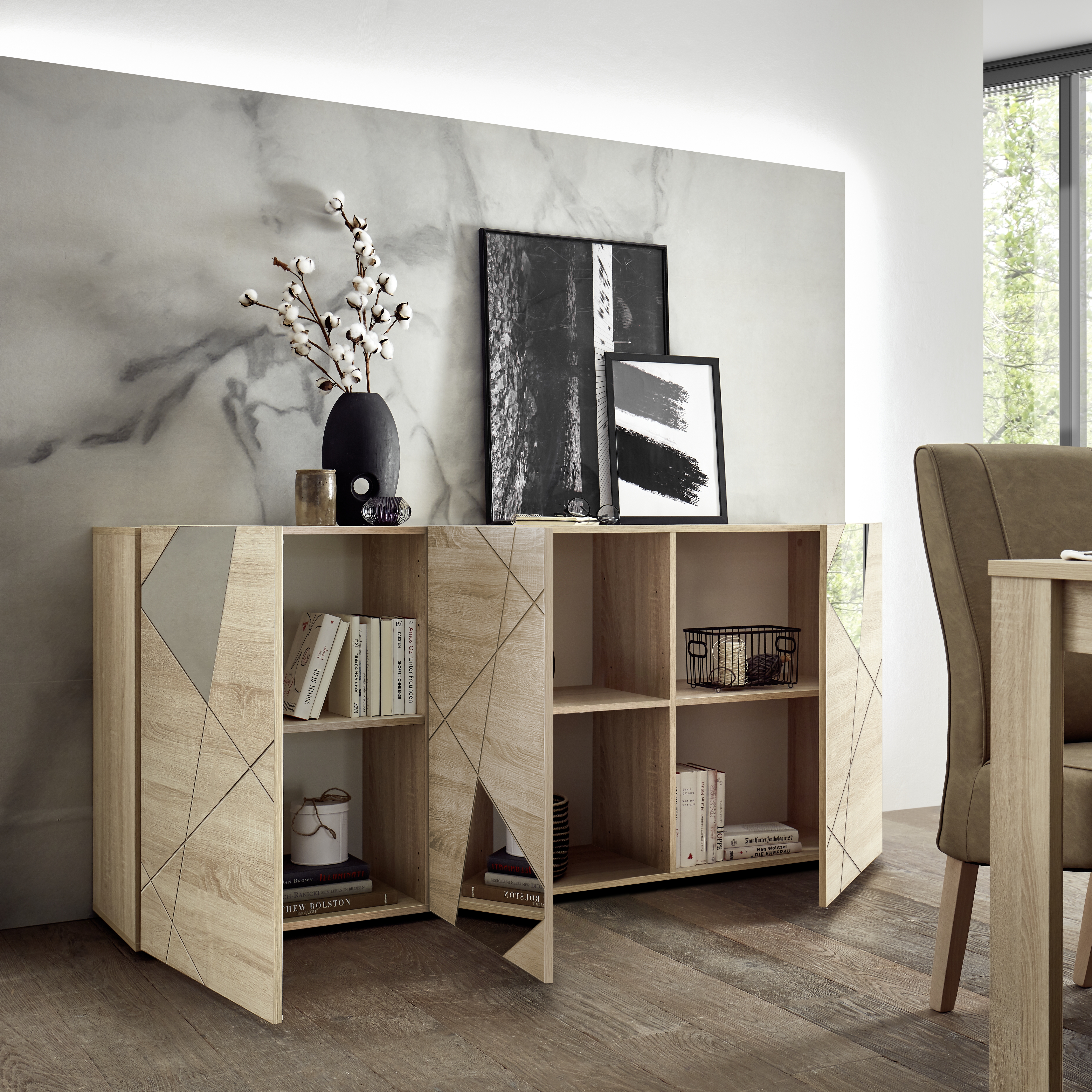 | Finition | Chêne Samoa avec sérigraphies et miroirs |